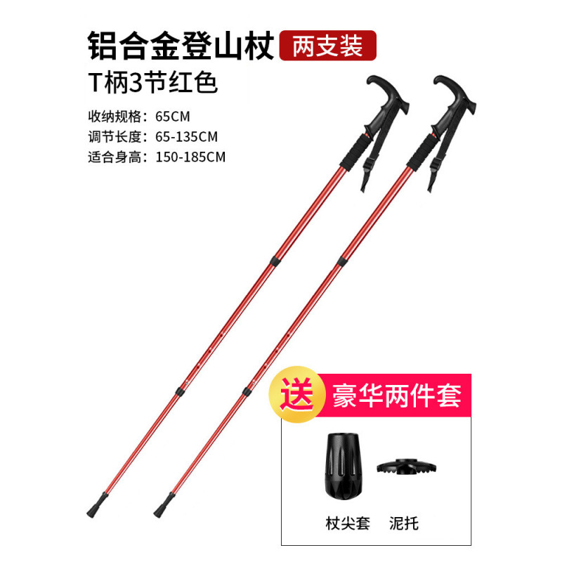 • 3개 섹션 텔레스코픽 | 곡선형 핸들 레드 65-135cm (충격 흡수 시스템 내장)
