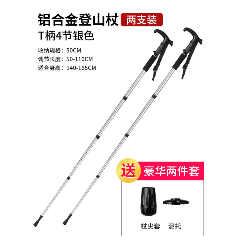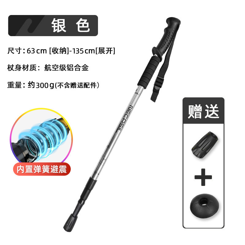 • 4개 섹션 텔레스코픽 | 스트레이트 핸들 실버 50-110cm (충격 흡수 시스템 내장)
