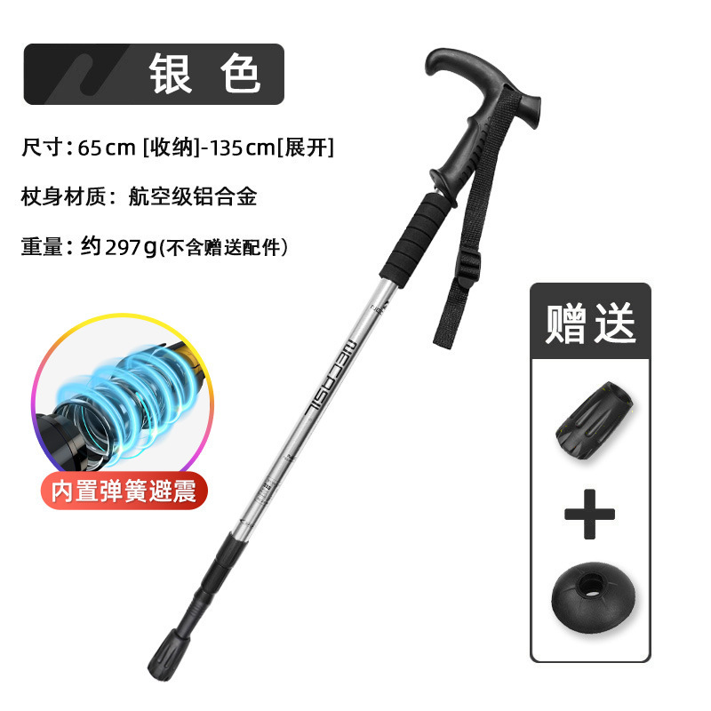 • 4개 섹션 텔레스코픽 | 곡선형 핸들 실버 50-110cm (충격 흡수 시스템 내장)