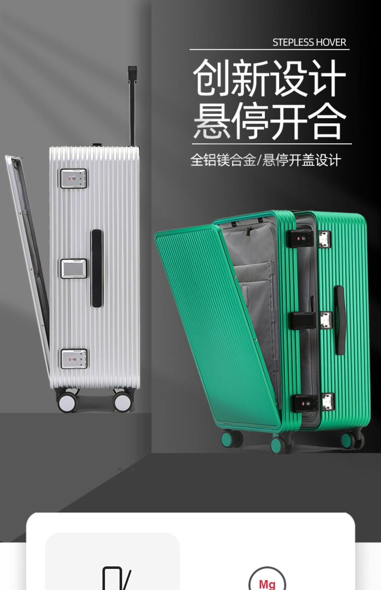 수출 전 개방형 가방 여성용 대용량 전체 알루미늄 마그네슘 합금 탑승 케이스 20 인치 24 남성용 여행용 트롤리 케이스 26
