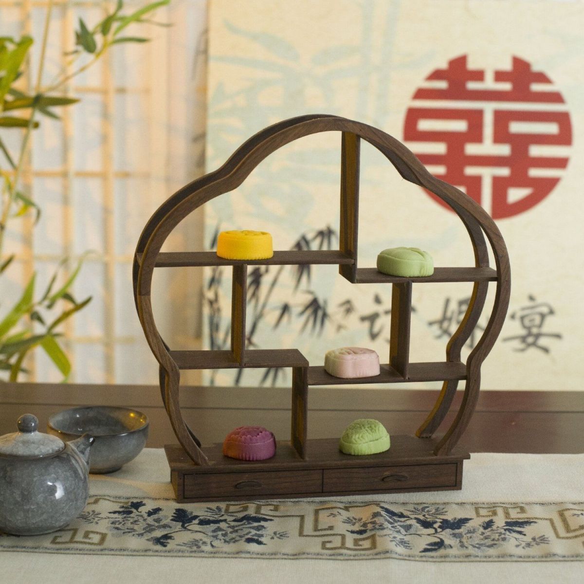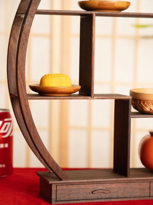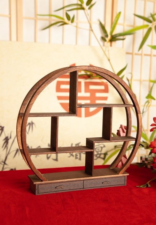 Zhen Huanzhen dimoo 블라인드 박스 매화 둥근 호두 나무 보관 선반 중국식 테이블 약혼 테이블 단단한 나무 스낵 테이블스토어 가기