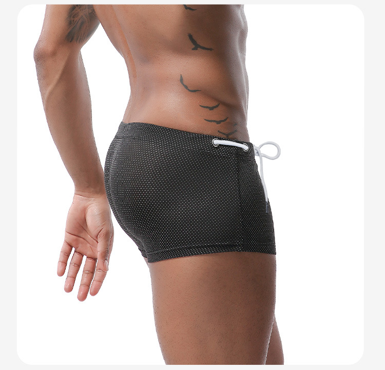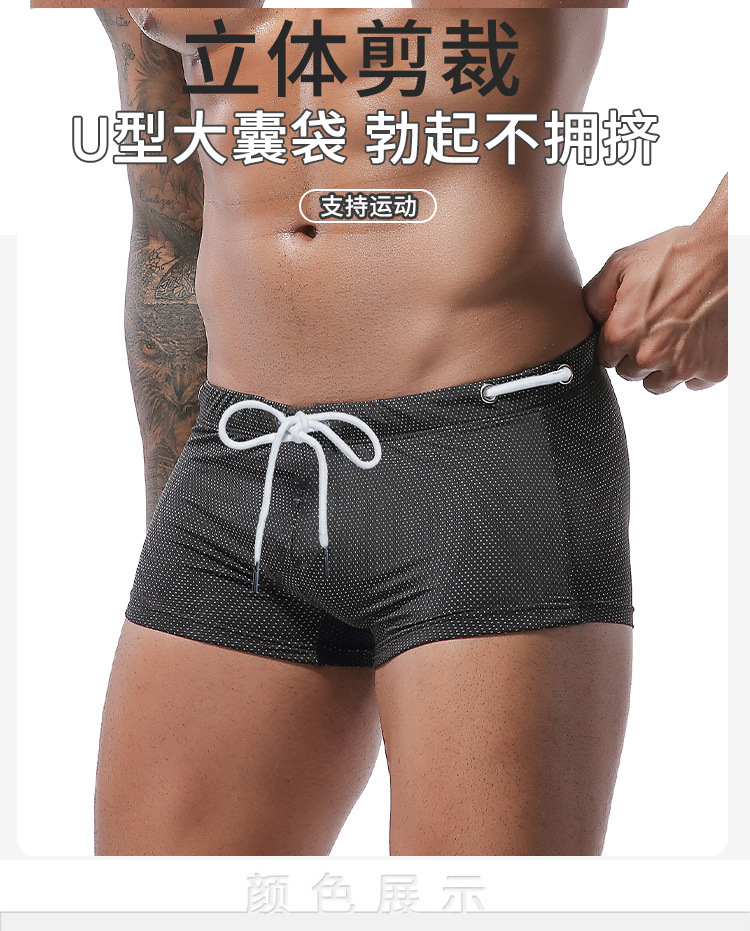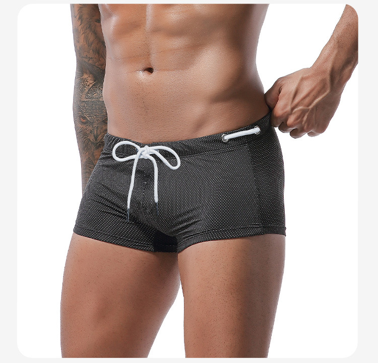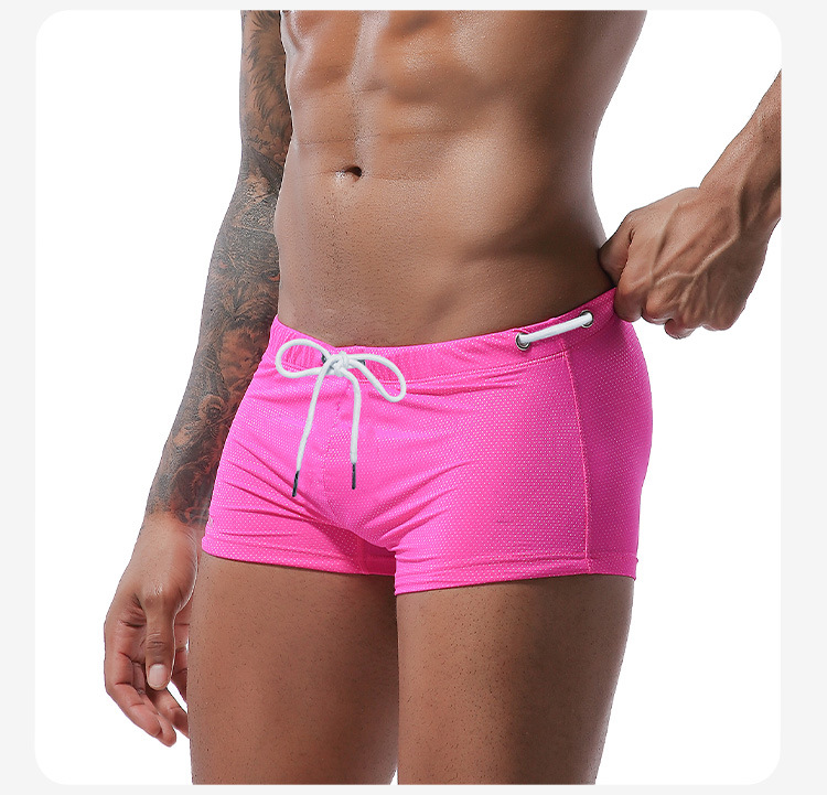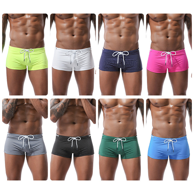 아마존의 새로운 수영 바지 남성 여름 끈 나일론 로우 웨이스트 복서 수영 바지 남성용 도매 속건성 비치 바지