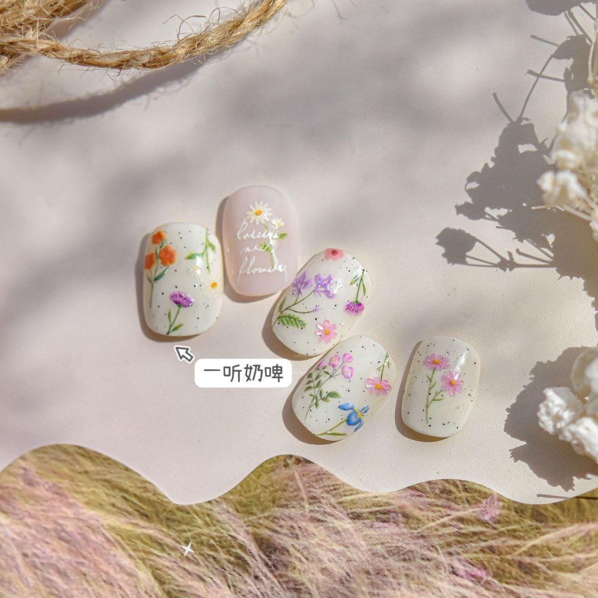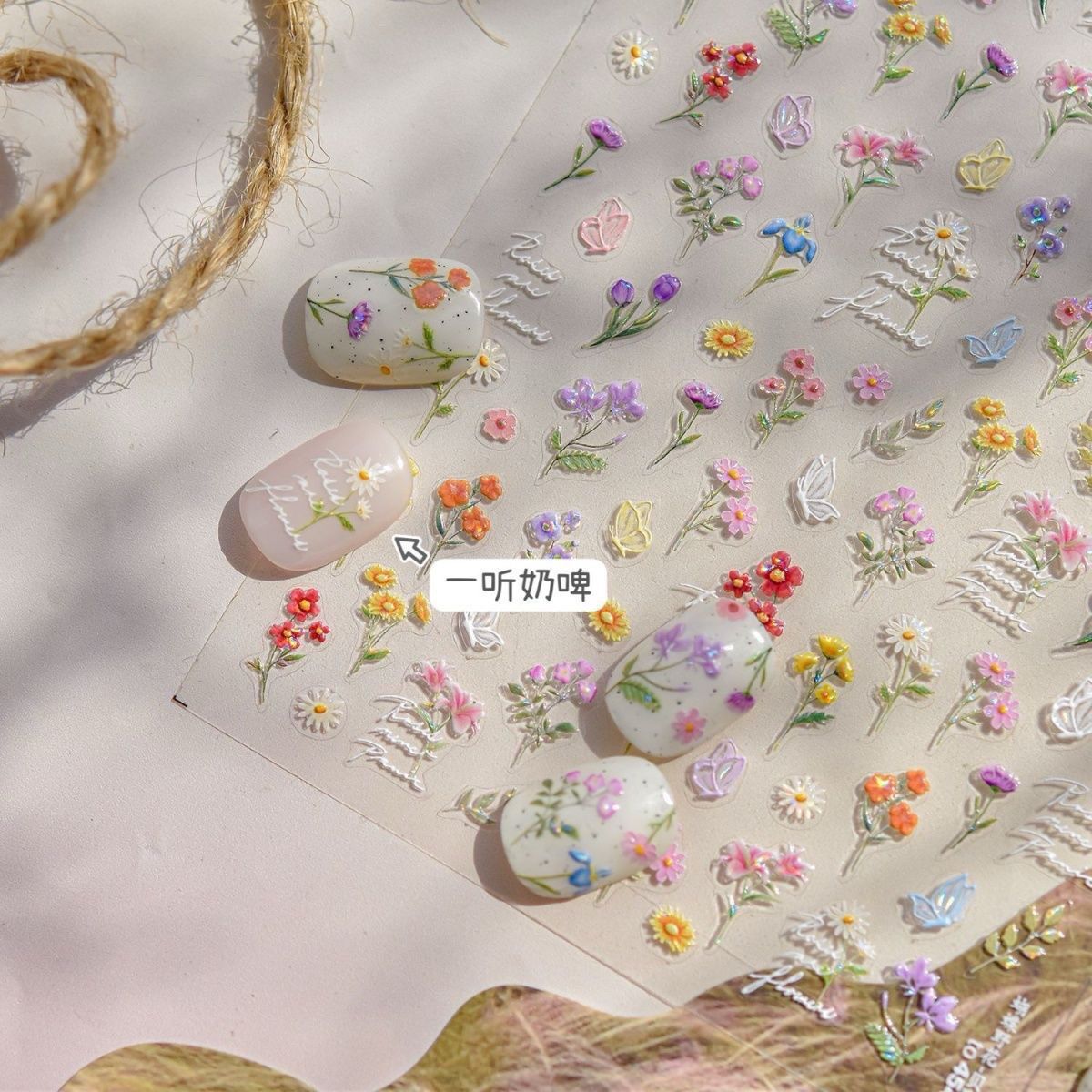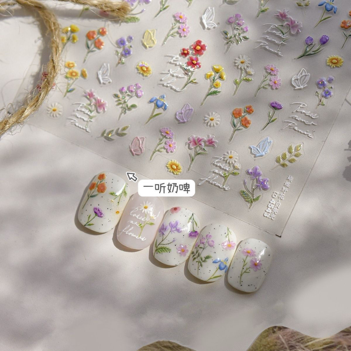 새로운 봄 다채로운 매니큐어 야생화 스티커 나비 양각 신선한 로맨틱 유화 간단한 손톱 귀여운스토어 가기
