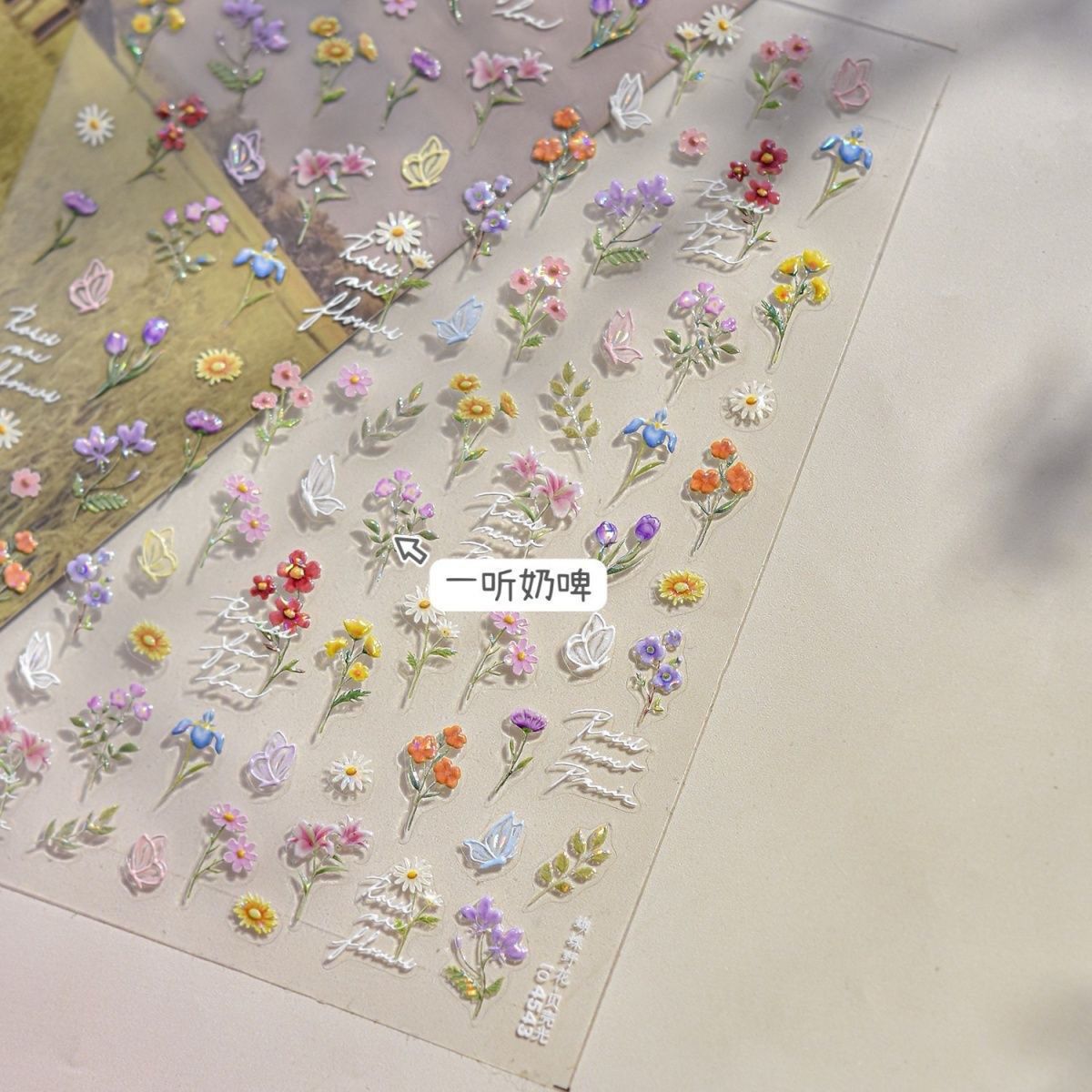 새로운 봄 다채로운 매니큐어 야생화 스티커 나비 양각 신선한 로맨틱 유화 간단한 손톱 귀여운