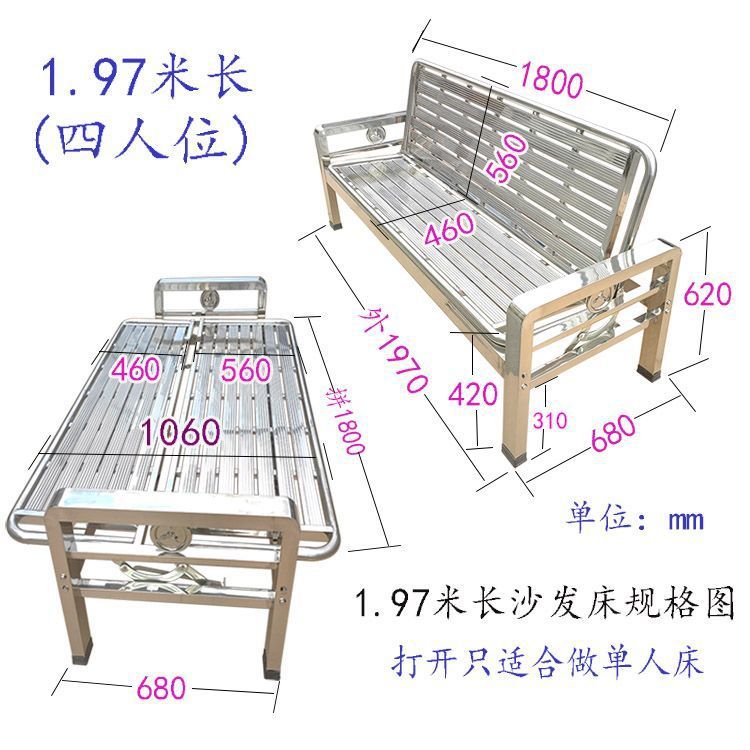 75x45 사각형 튜브 대형 스테인레스 스틸 소파 침대 접이식 이중 목적 주거용 거실 야외 현대 다기능스토어 가기