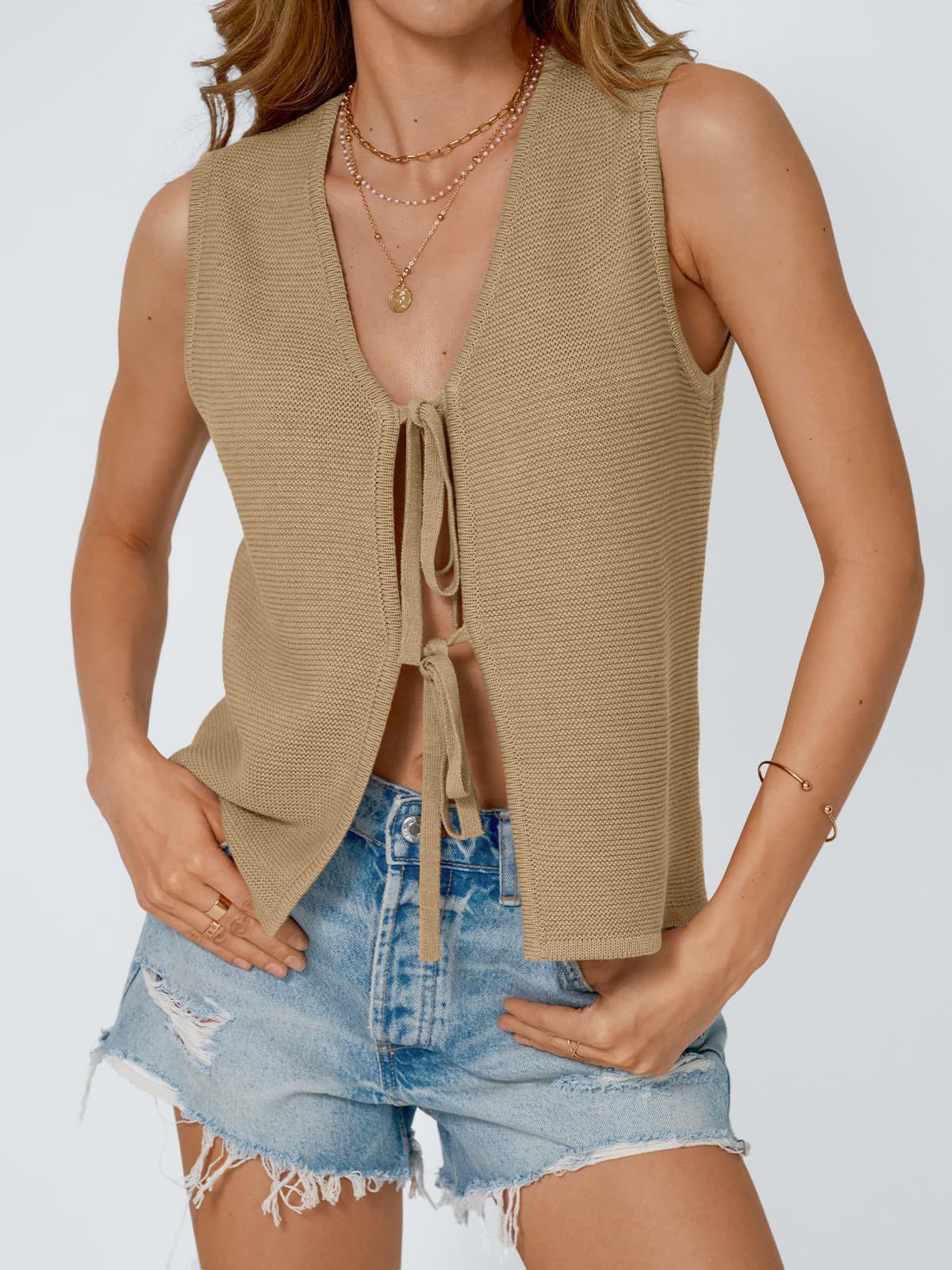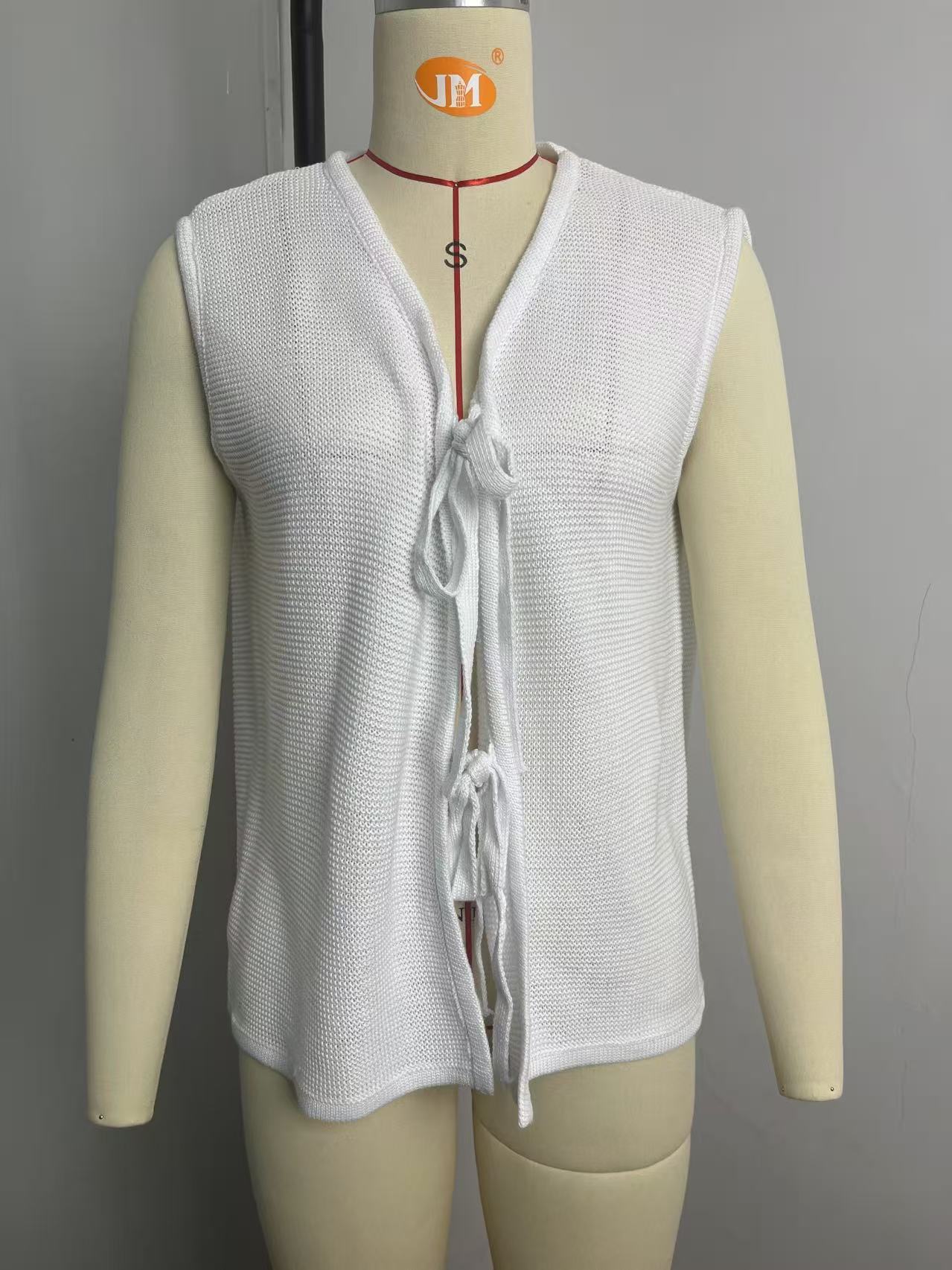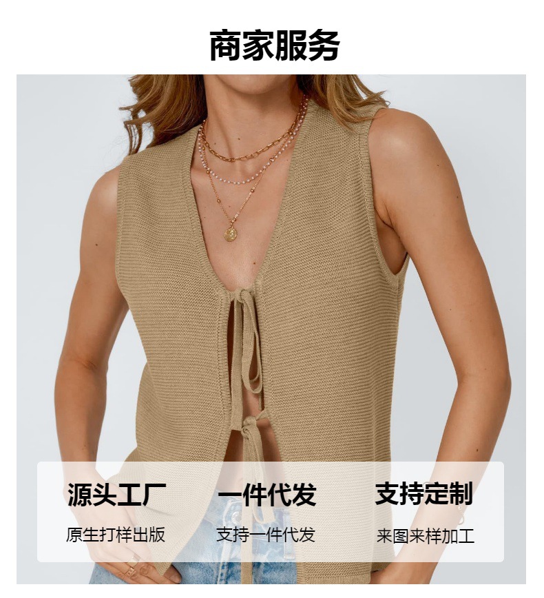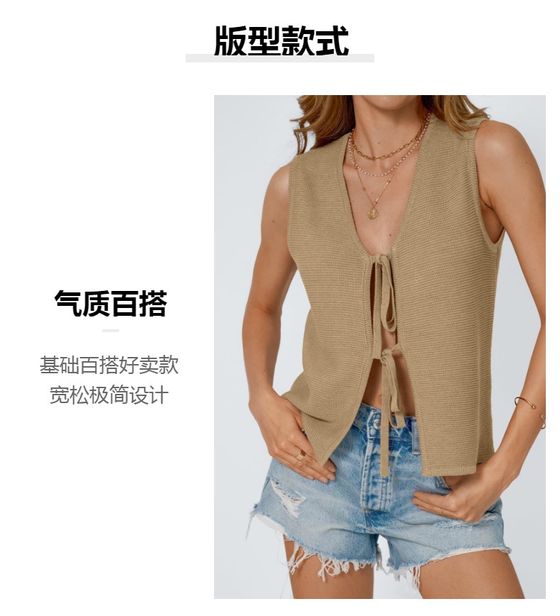 2025 니트 조끼 아마존 유럽과 미국 여름 솔리드 컬러 카디건 스웨터 여성용 심플하고 다재다능한 나비 민소매 탑