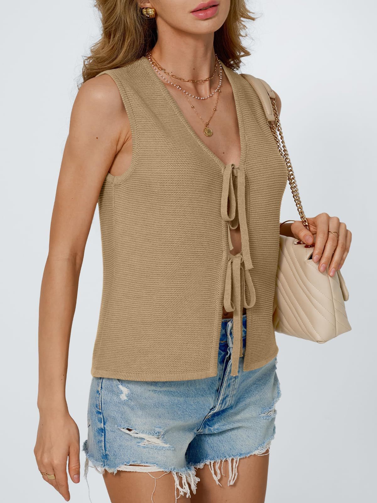 2025 니트 조끼 아마존 유럽과 미국 여름 솔리드 컬러 카디건 스웨터 여성용 심플하고 다재다능한 나비 민소매 탑스토어 가기