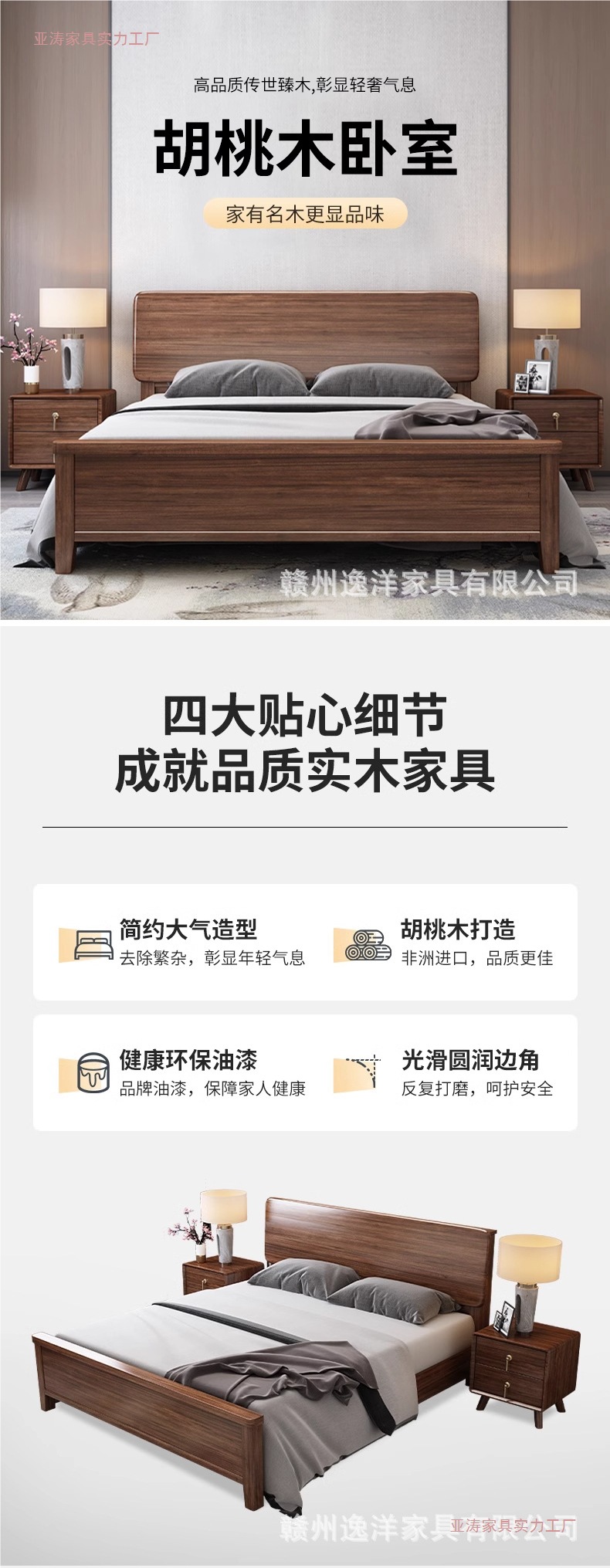 • 호두나무 침대 + 20cm 5E 진드기 방지 매트리스 + 침대 옆 탁자*1