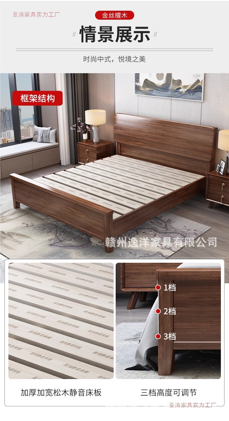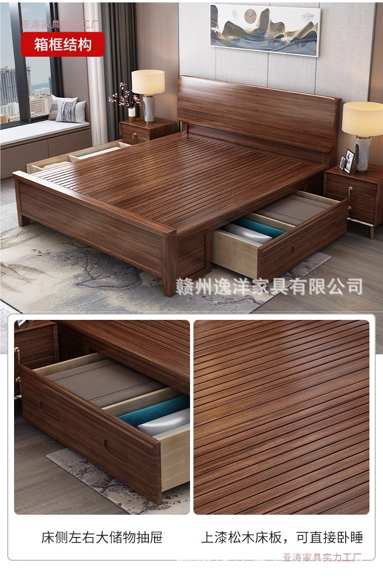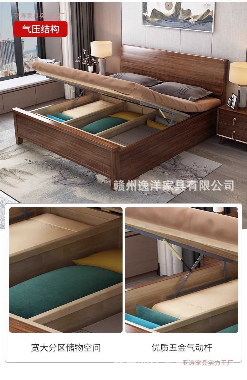 호두 원목 침대 1.8m 라이트 럭셔리 마스터 침실 새로운 중국 스타일 2024 새로운 하이 박스 공기압 저장 가정용 대형 침대스토어 가기