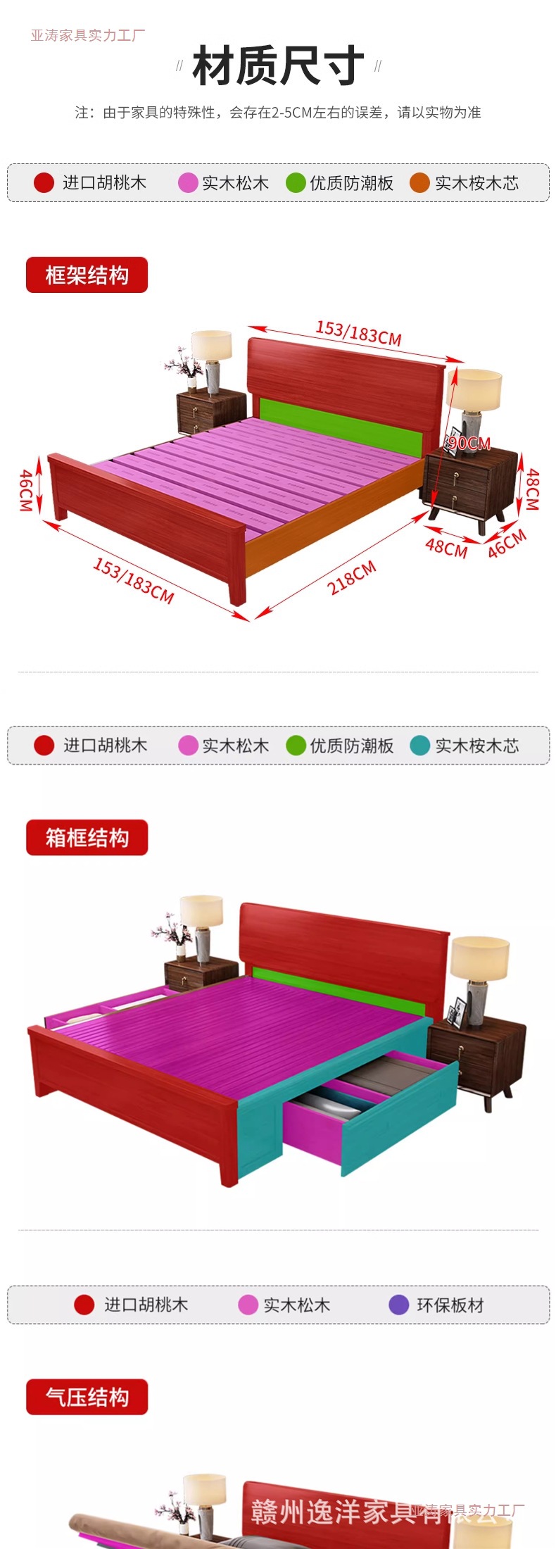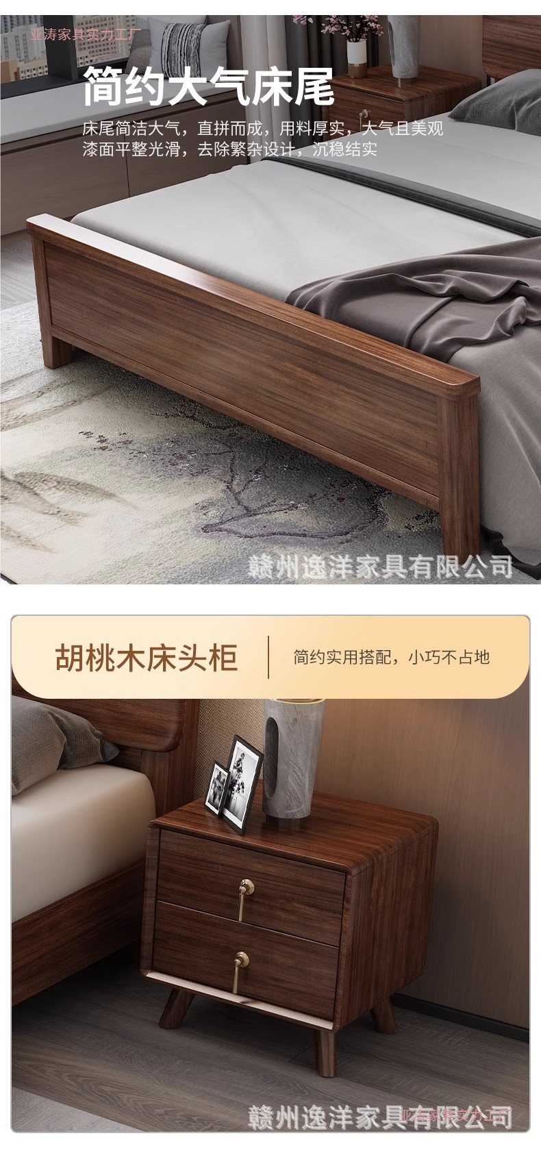• 호두 침대 + 20cm 아이스 실크 이중 목적 매트리스 + 침대 옆 테이블 * 1
