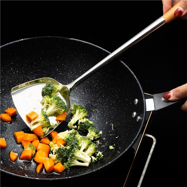 304 프라이팬 스푼, 프라이팬 주걱, 셰프 스테인레스 스틸 주걱, 상업용 긴 손잡이 서빙 스푼, 요리 스푼, 길어진 주걱