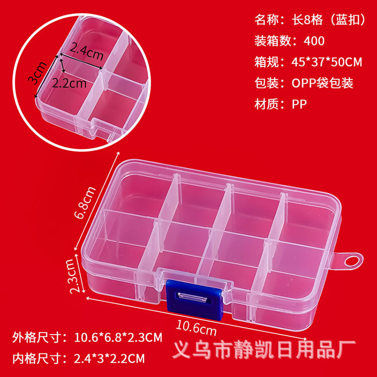 후크가 있는 직사각형 8칸 약 상자 플라스틱 커버 낚시 장비 구슬 포장 투명 보석 보관 플라스틱 상자스토어 가기