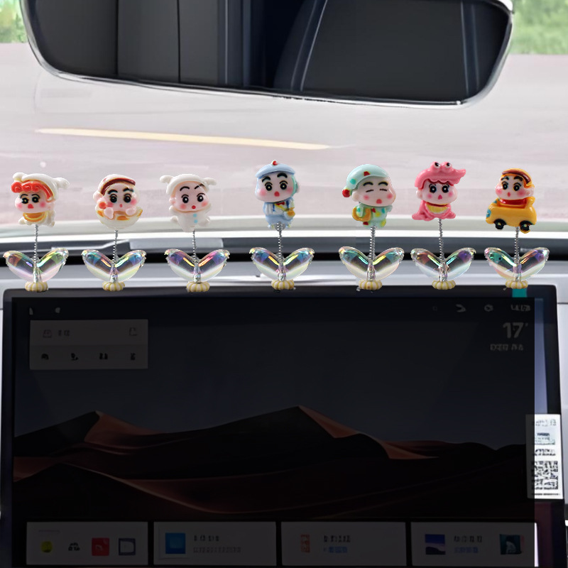 자동차 장식품 크레용 신짱 자동차 인테리어 센터 콘솔 디스플레이 흔들리는 머리 장식 만화 귀여운 자동차 장식
