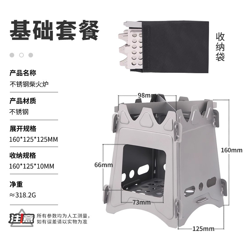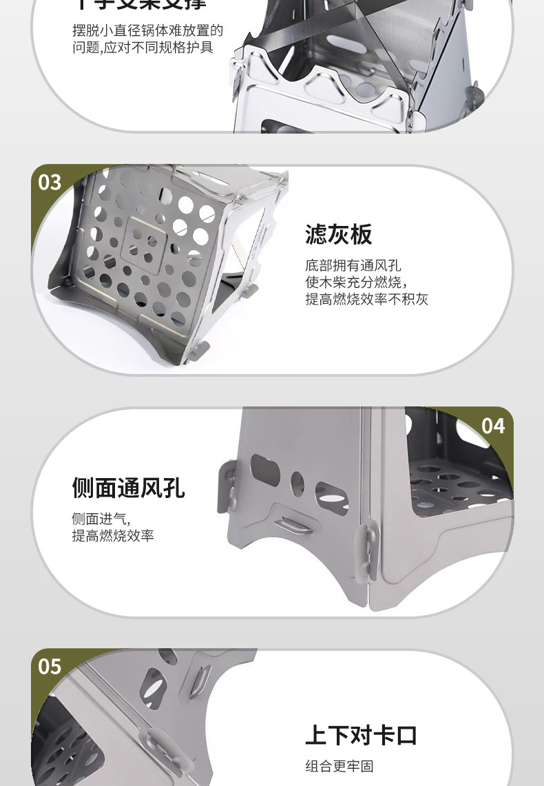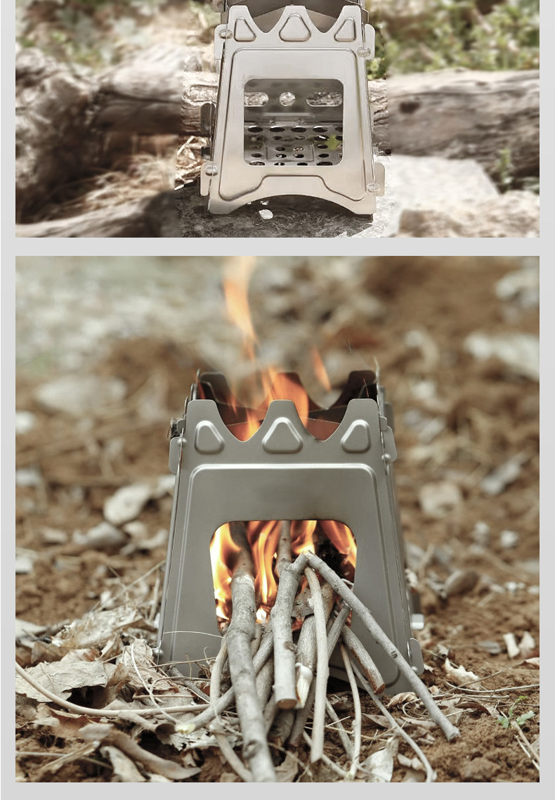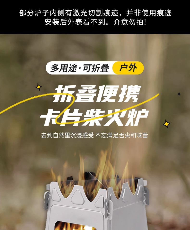 户外折叠柴火炉不锈钢露营防风烧柴炉野餐便携式卡片炉烧水取暖炉