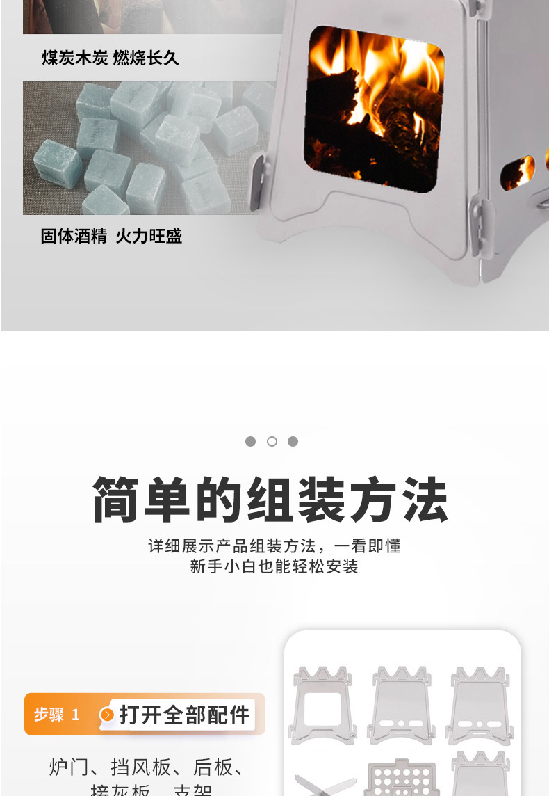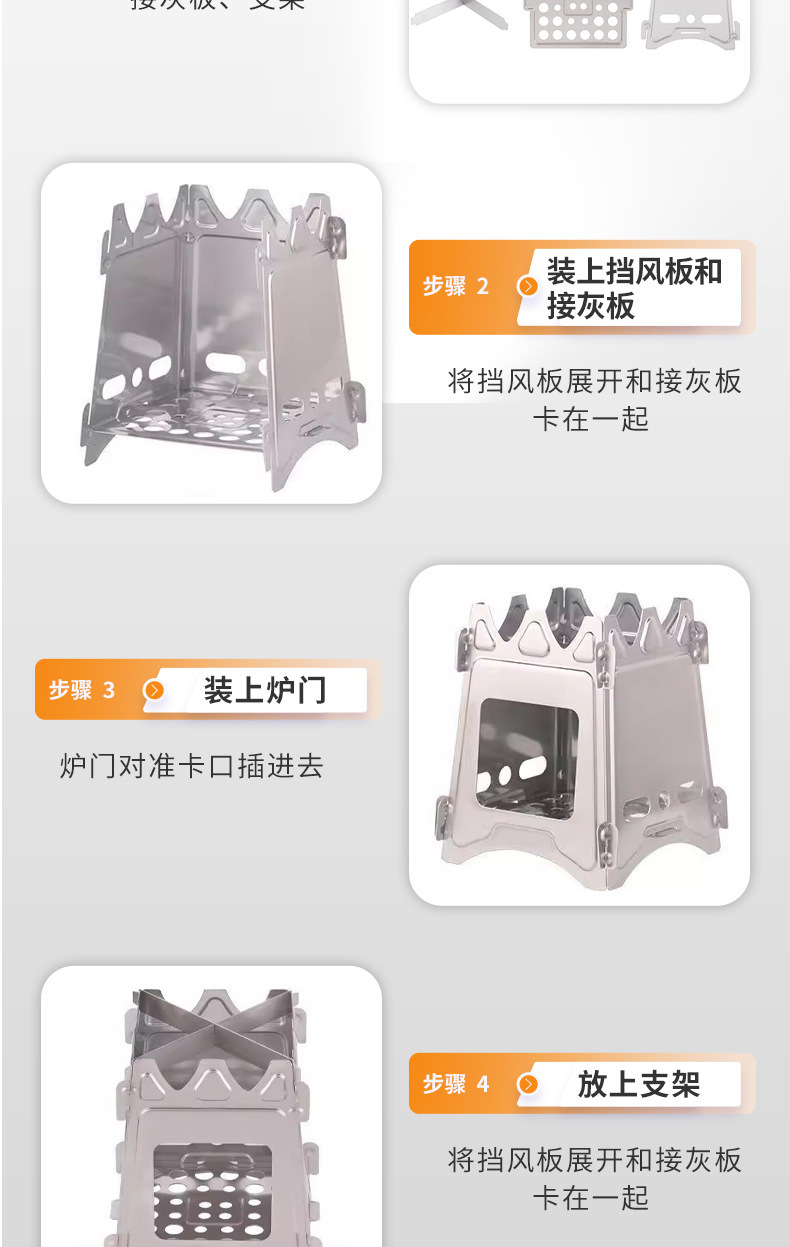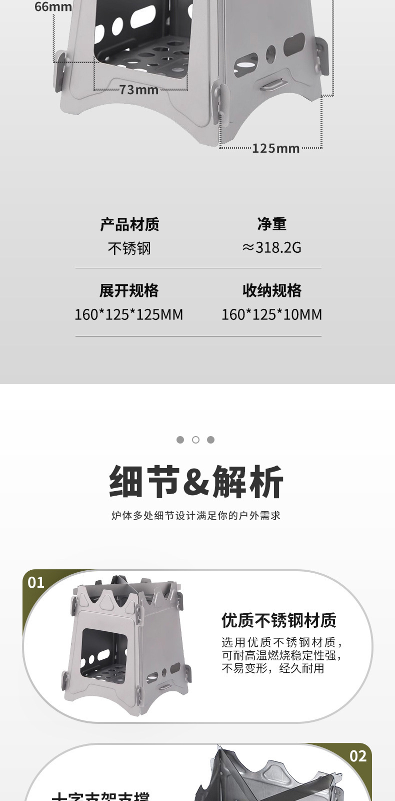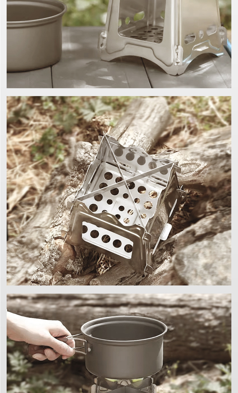 户外折叠柴火炉不锈钢露营防风烧柴炉野餐便携式卡片炉烧水取暖炉