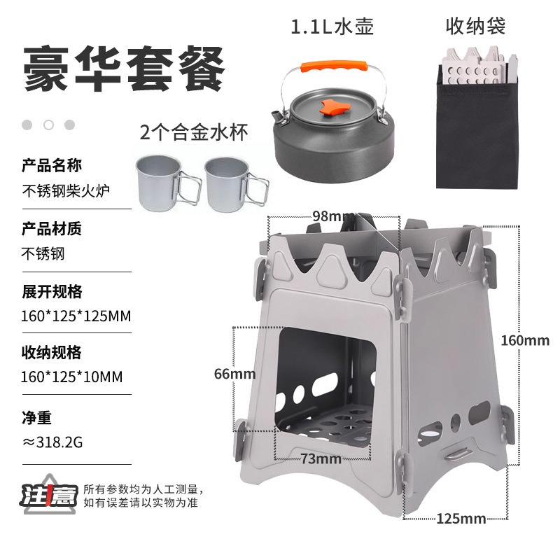 • [표준 모델] 스테인레스 스틸 장작 난로 + 1.1L 주전자 + 보관 가방
