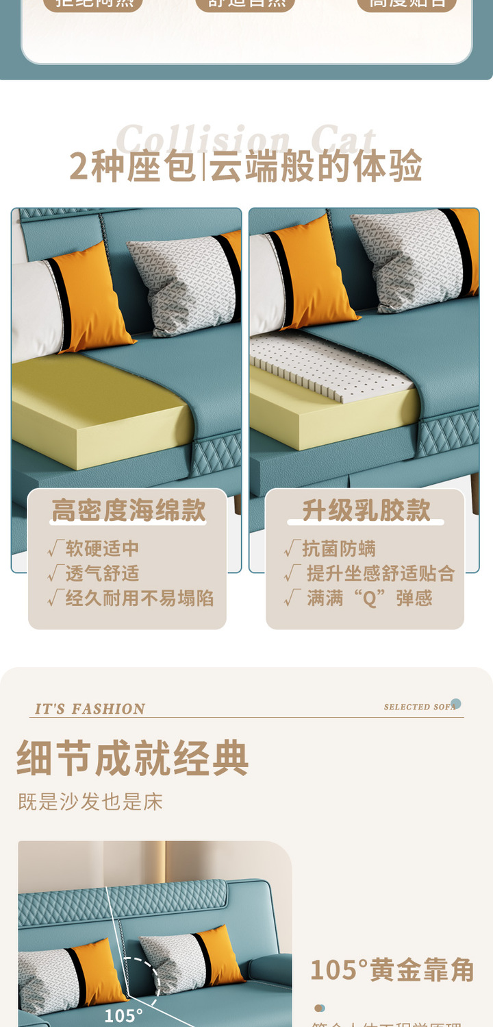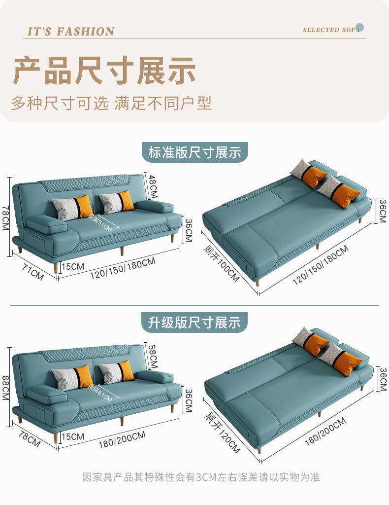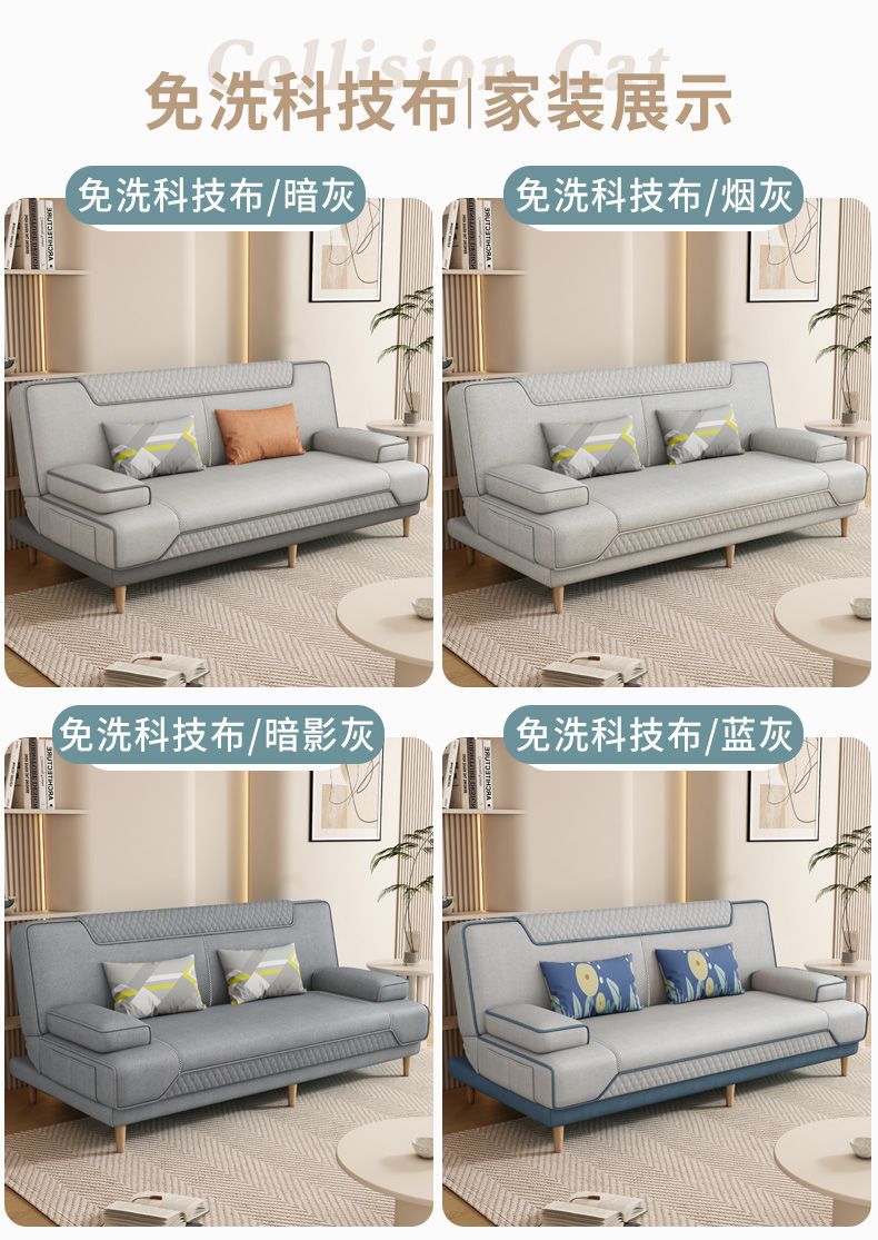 간단한 접이식 소파 베드 이중 목적 작은 아파트 거실 다기능 더블 또는 3인용 노워시 라텍스 패브릭 게으른 소파스토어 가기