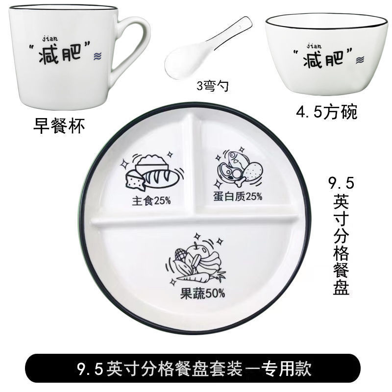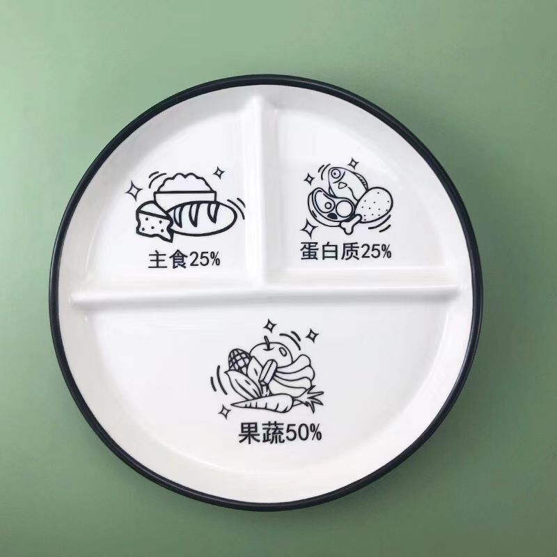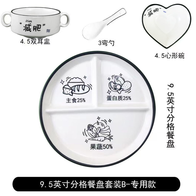 211 칸막이 지방 감량 식사 접시 가정용 아침 식사 식기 어린이 세라믹 체중 감량 정량 접시 3칸 식사 접시