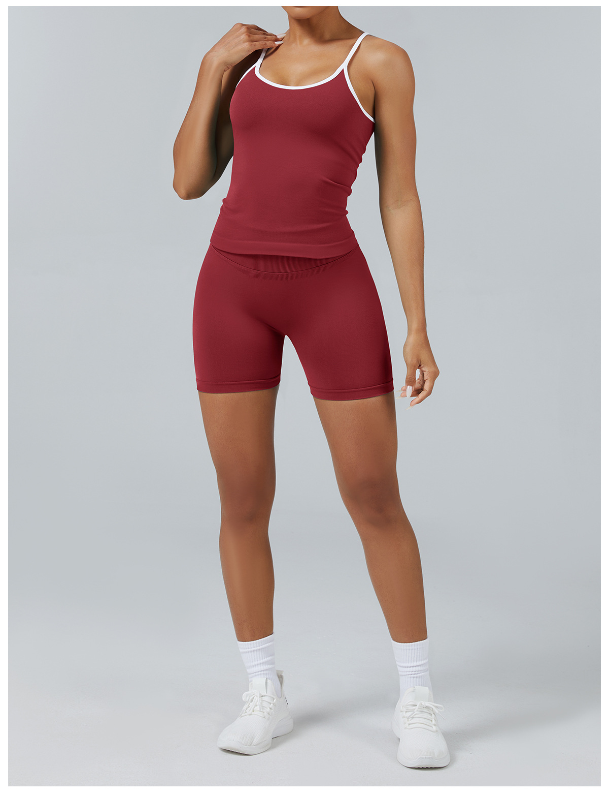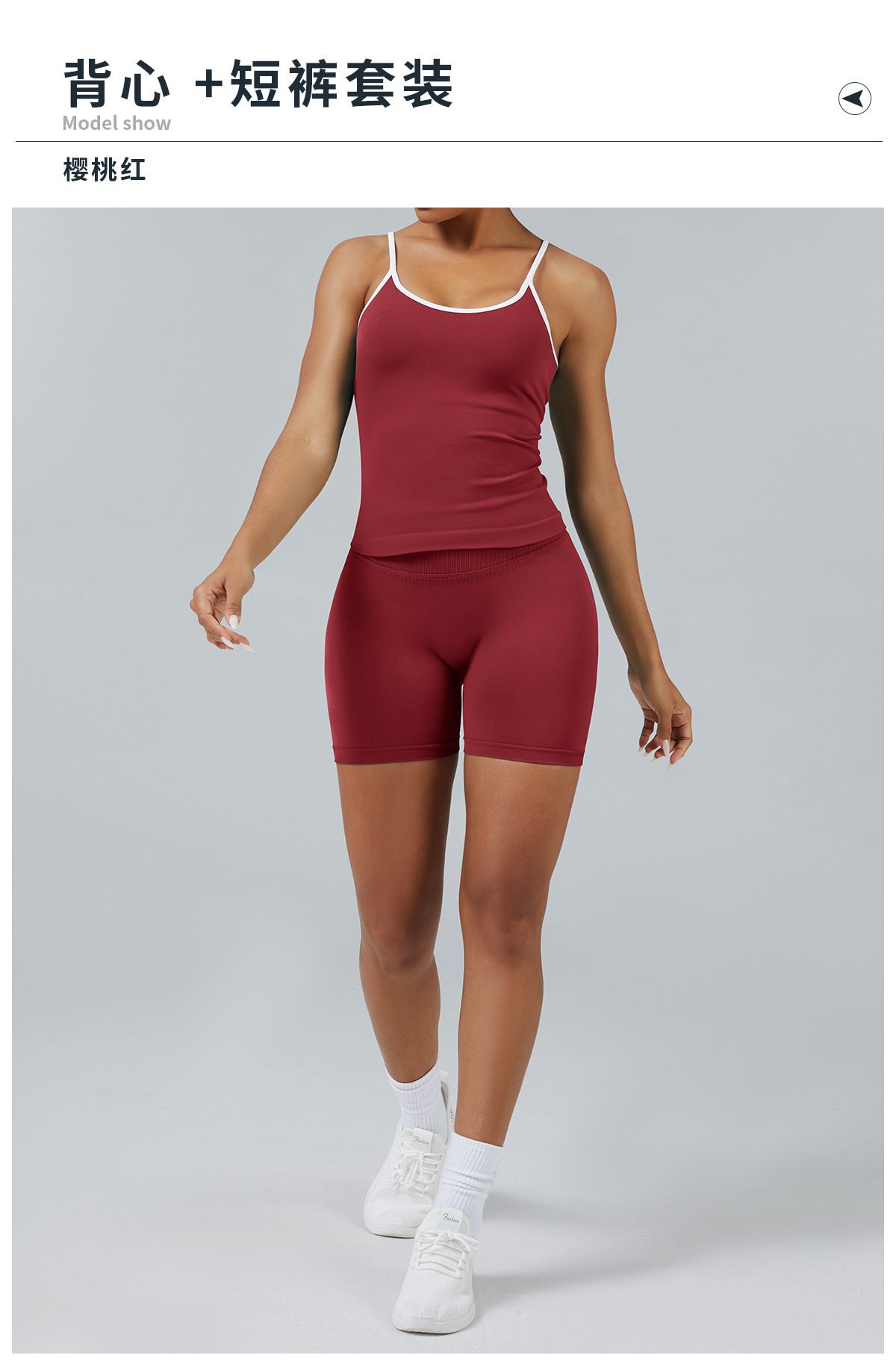 • 서스펜더 브라 체리 레드 + 반바지 체리 레드
