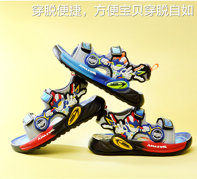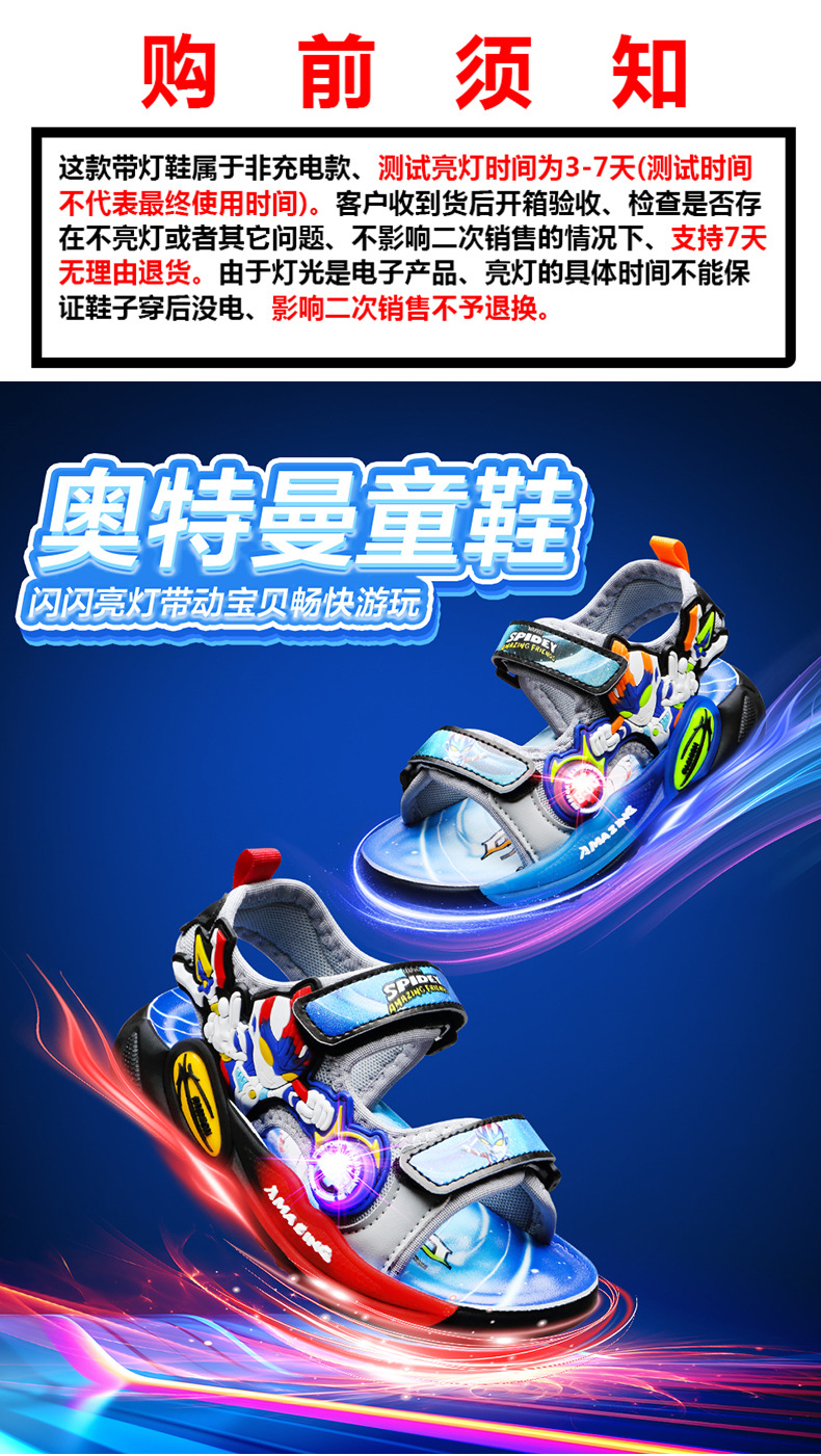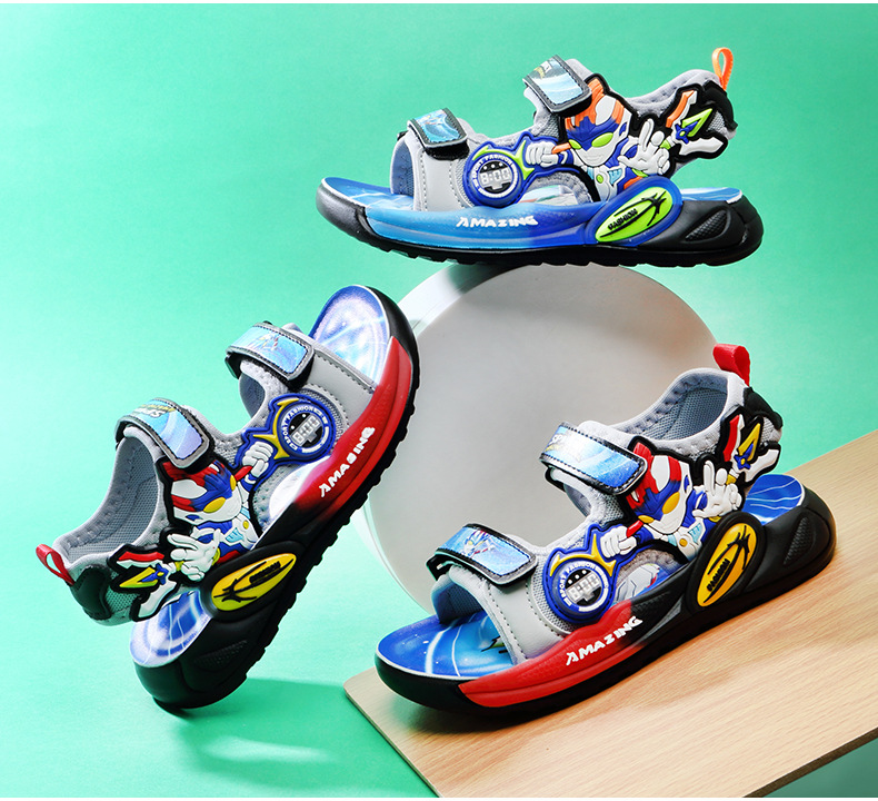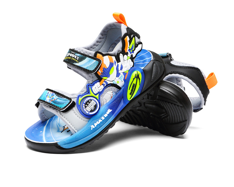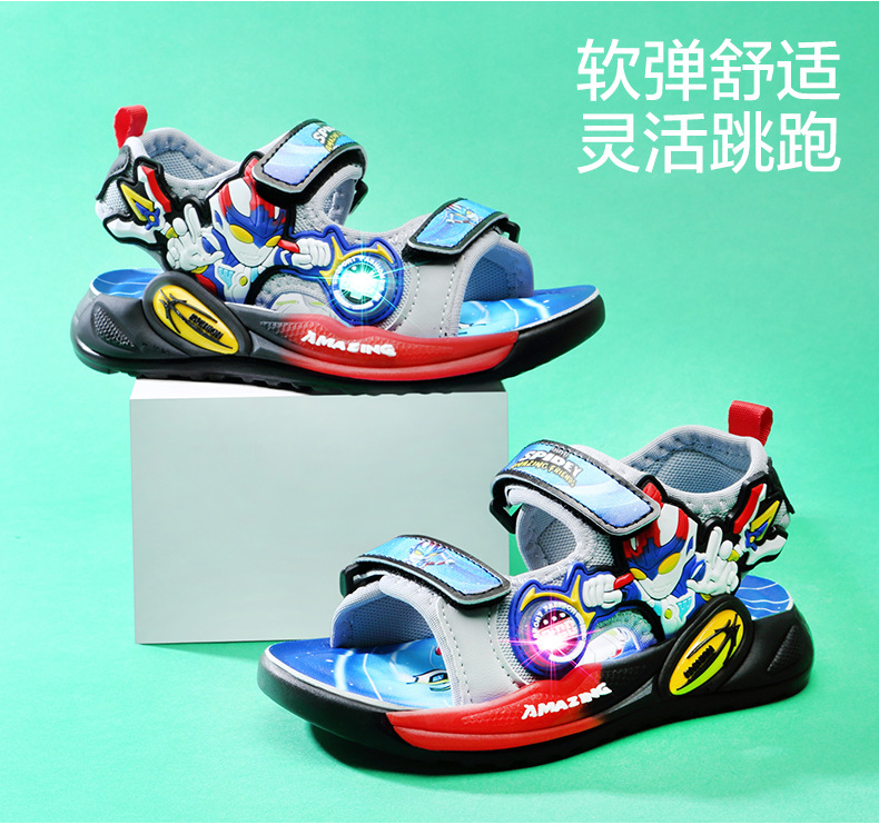 엄선된 울트라맨 국경 간 수출 2025 여름 깜박이는 어린이 샌들 만화 소년 해변 신발 귀여운 작은 신발스토어 가기