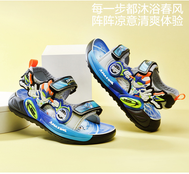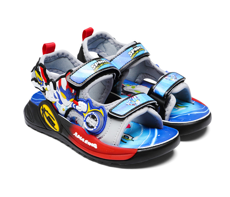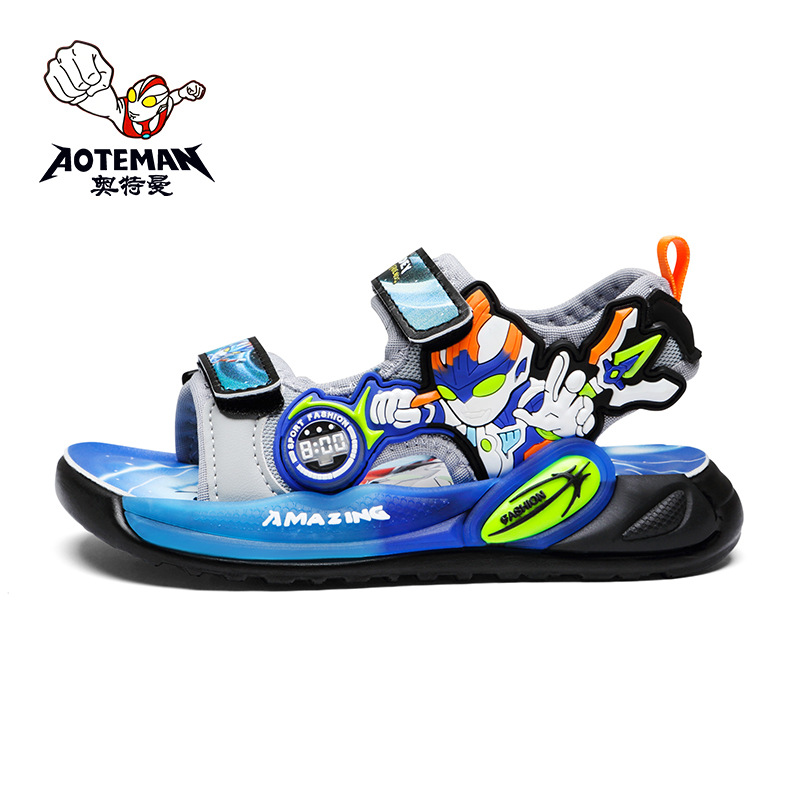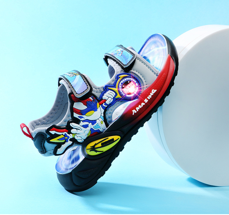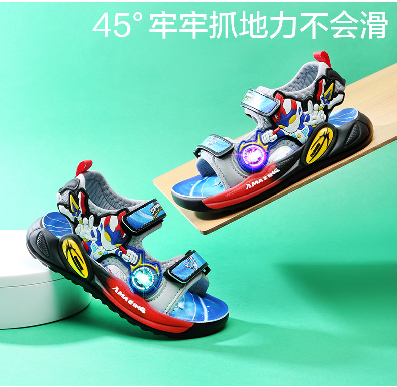 엄선된 울트라맨 국경 간 수출 2025 여름 깜박이는 어린이 샌들 만화 소년 해변 신발 귀여운 작은 신발스토어 가기