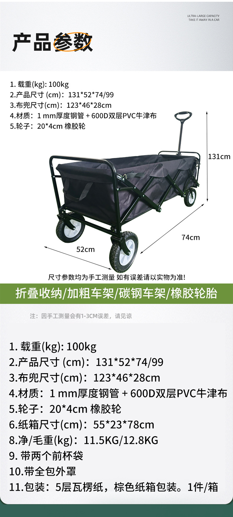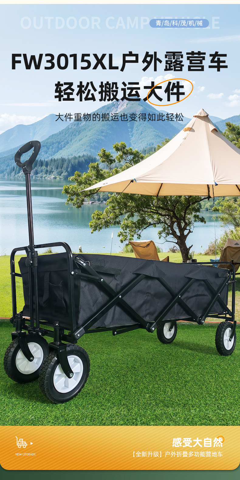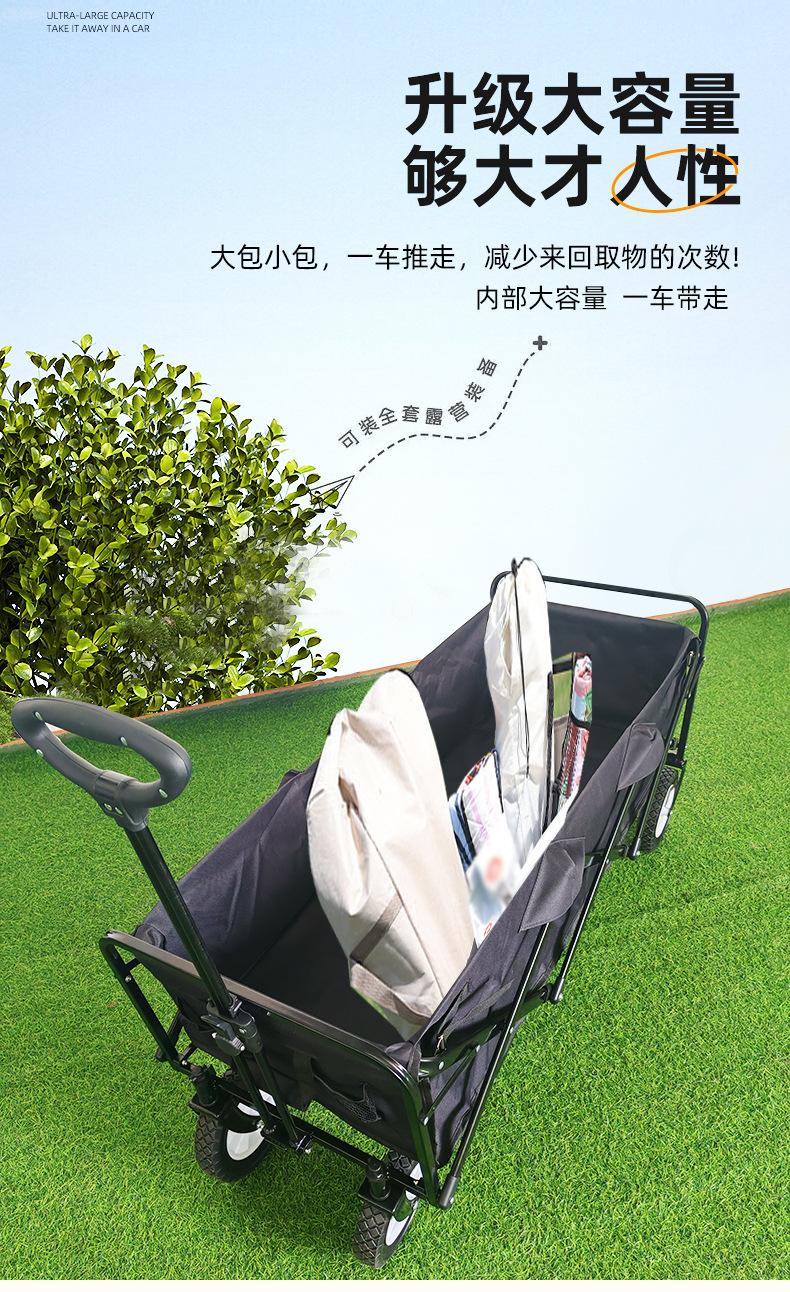 야외 접이식 캠핑 트롤리 피크닉 트롤리 대용량 캠핑 야외 트롤리 경량 와이드 휠 트롤리