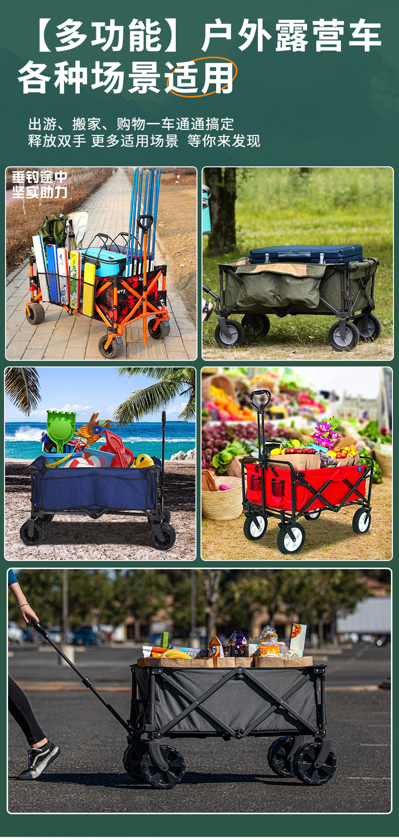 야외 접이식 캠핑 트롤리 피크닉 트롤리 대용량 캠핑 야외 트롤리 경량 와이드 휠 트롤리스토어 가기