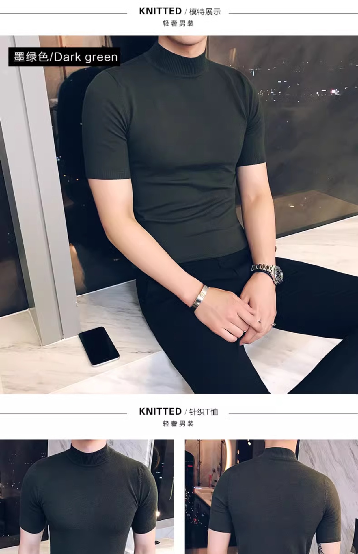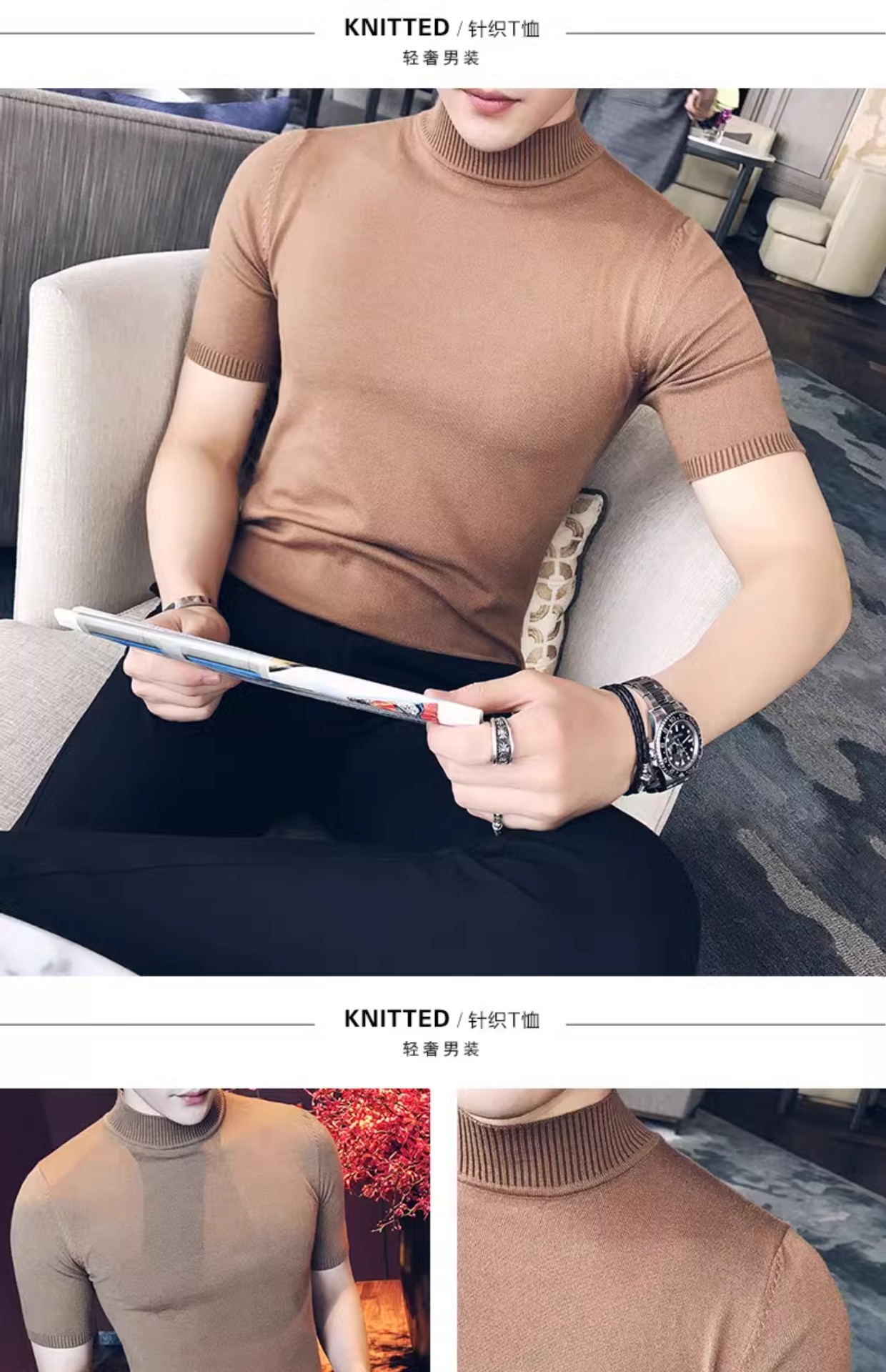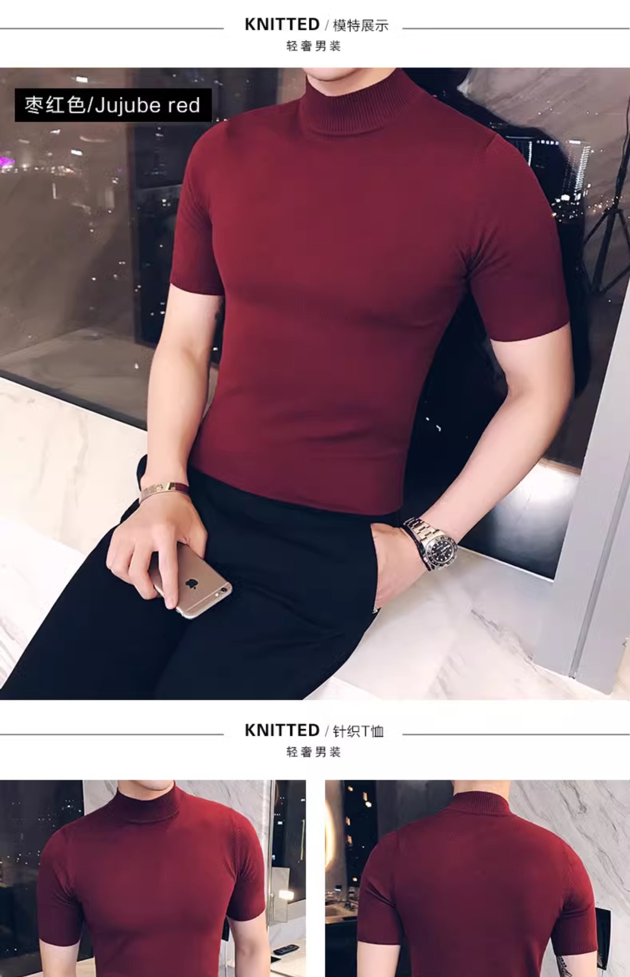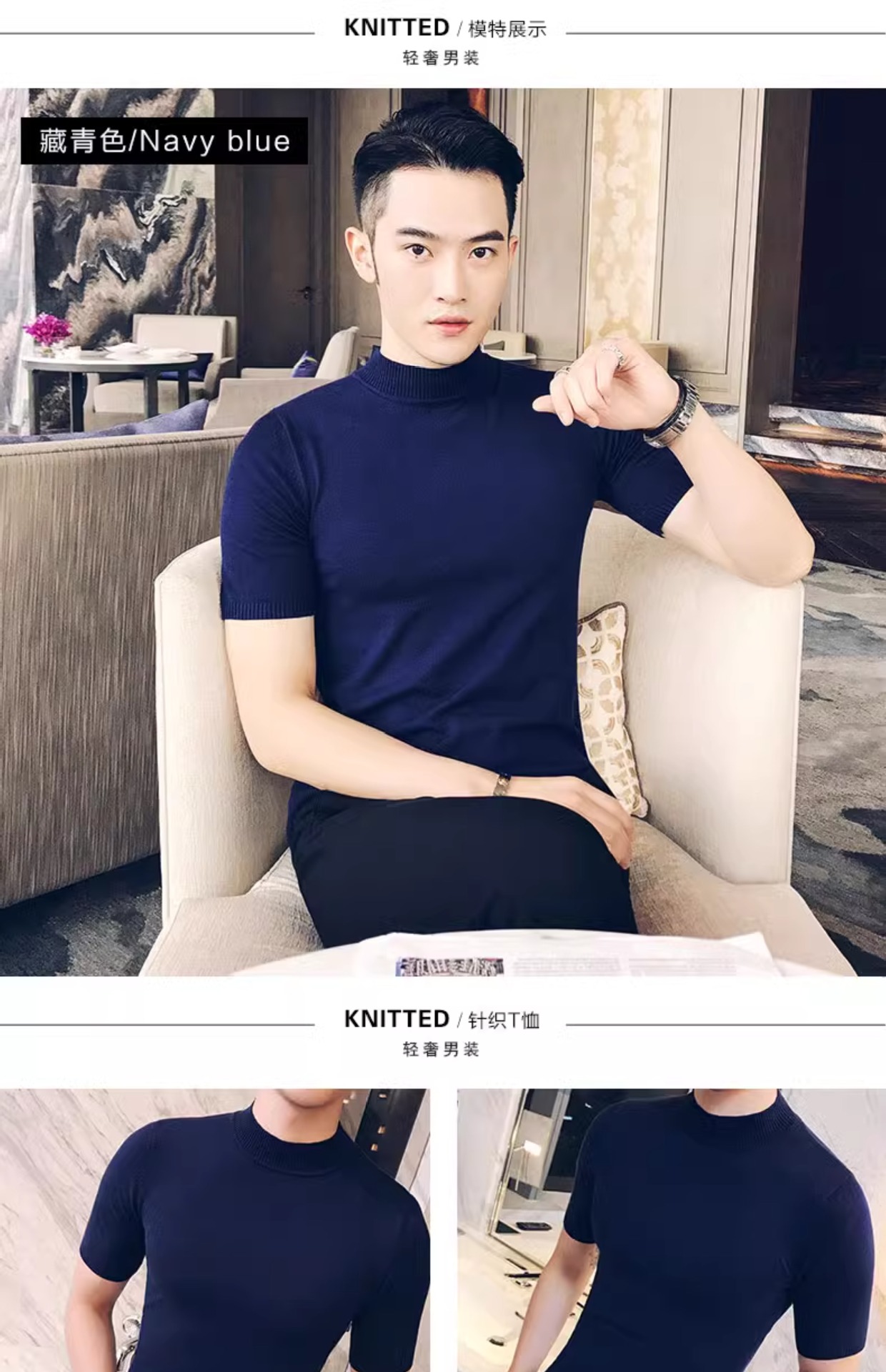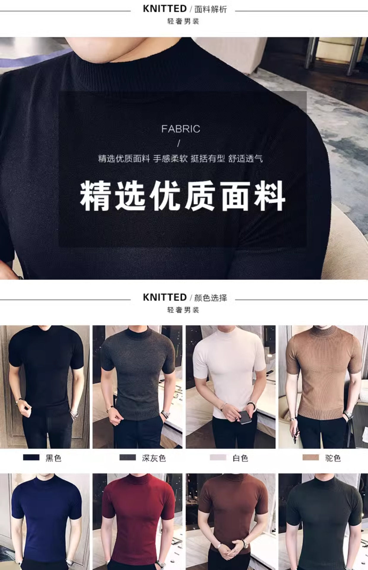 제조 업체 도매 남성 스웨터 하프 터틀넥 반팔 중간 칼라 슬림 니트 솔리드 컬러 봄 가을 겨울 풀오버 셔츠