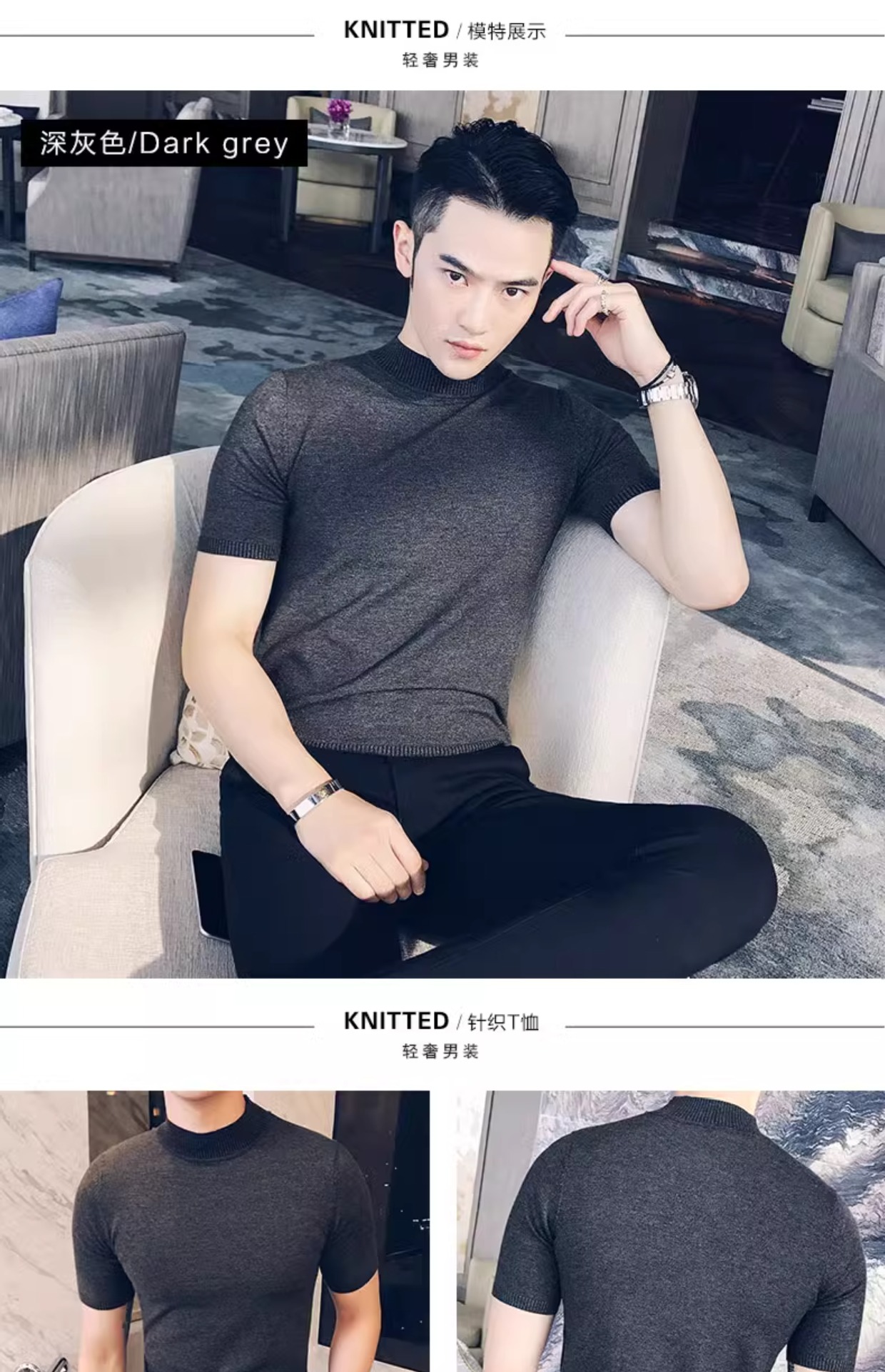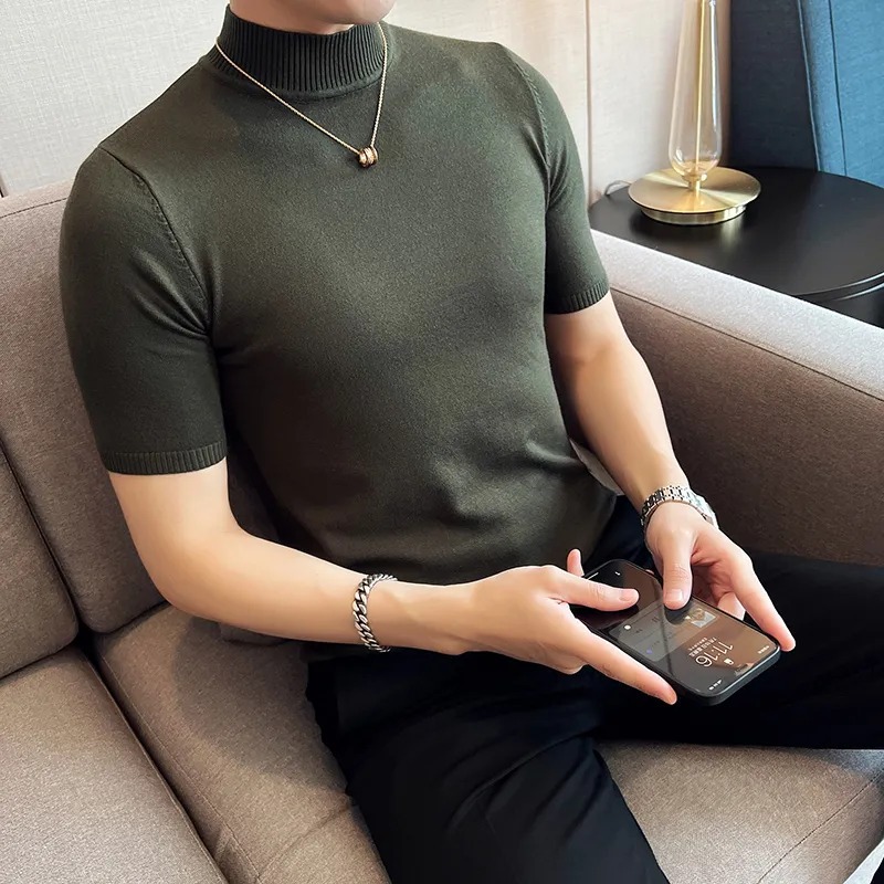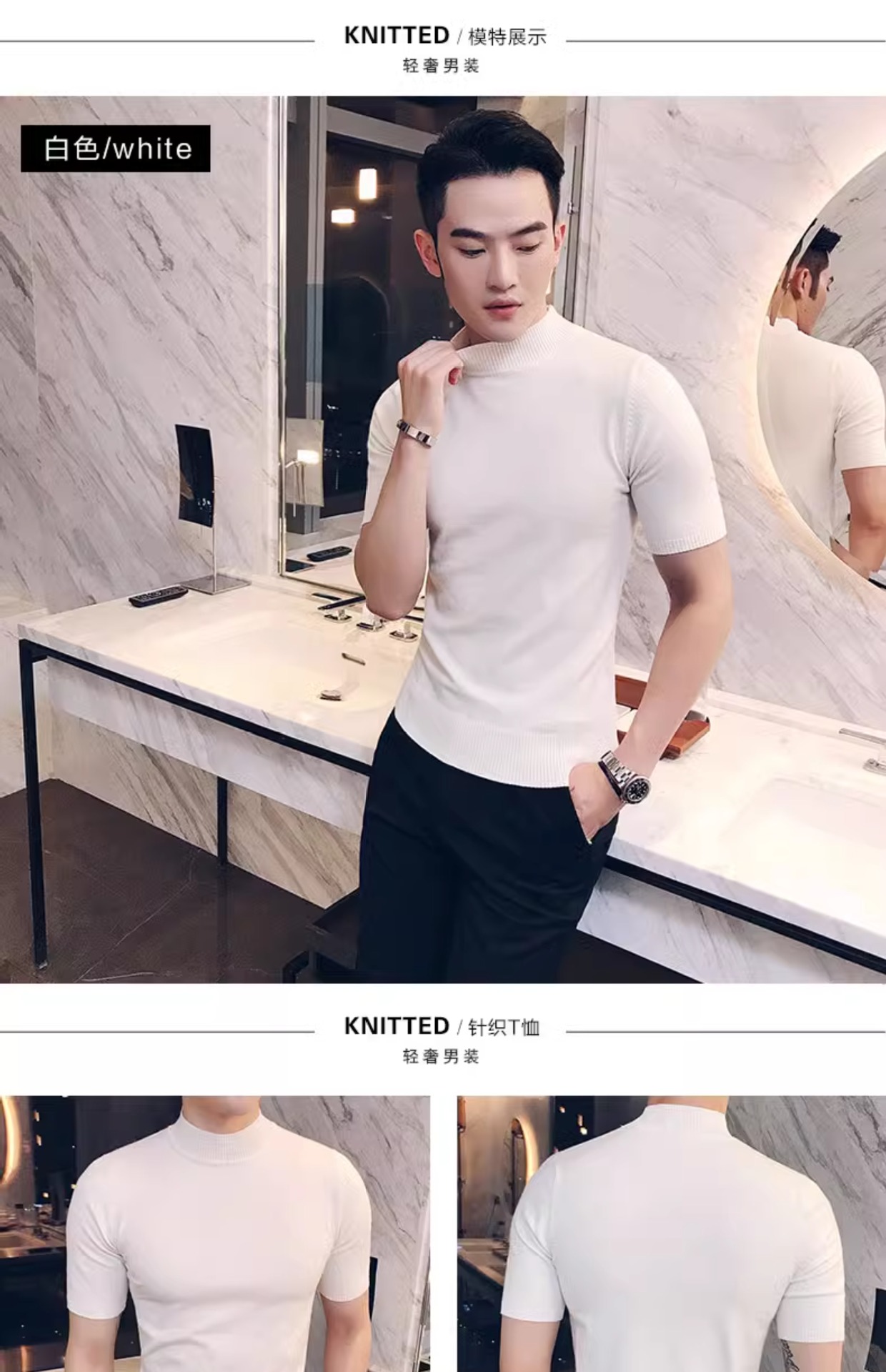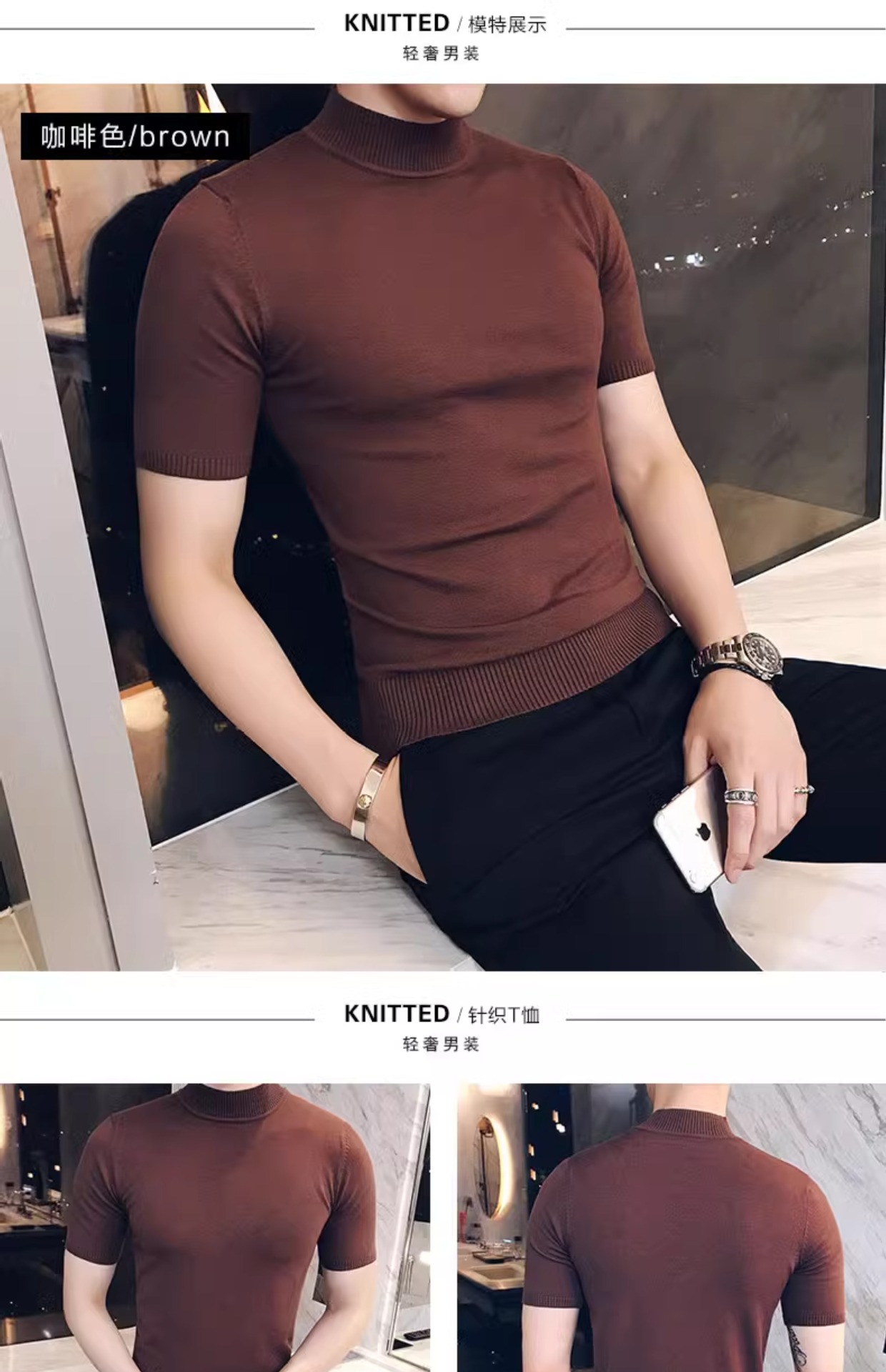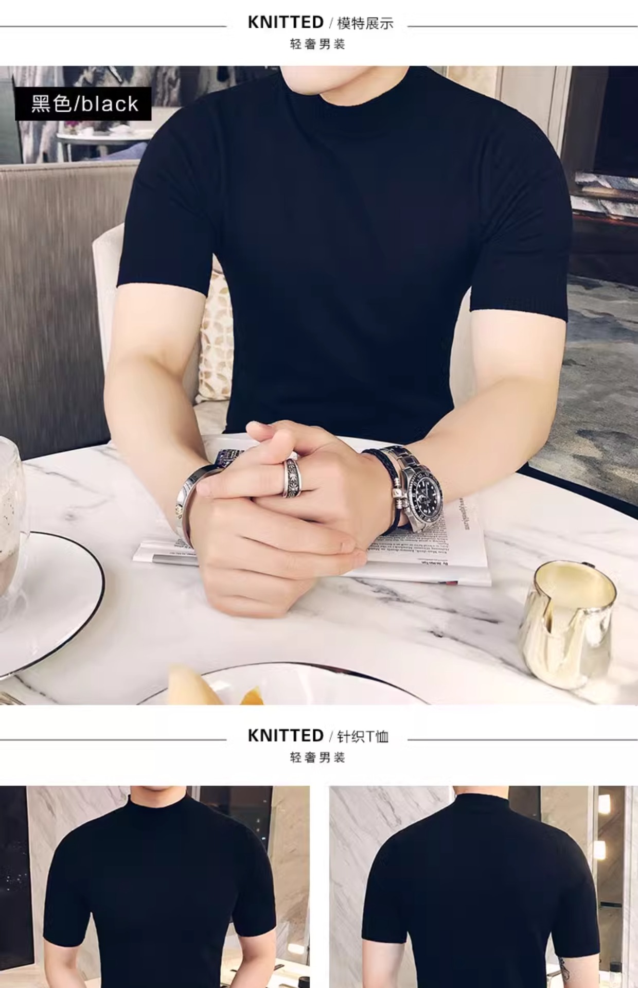 제조 업체 도매 남성 스웨터 하프 터틀넥 반팔 중간 칼라 슬림 니트 솔리드 컬러 봄 가을 겨울 풀오버 셔츠