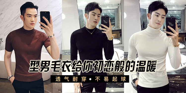 제조 업체 도매 남성 스웨터 하프 터틀넥 반팔 중간 칼라 슬림 니트 솔리드 컬러 봄 가을 겨울 풀오버 셔츠스토어 가기