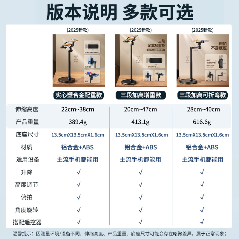 휴대 전화 홀더 2025 게으른 사람들을위한 새로운 데스크탑 라이브 비디오 촬영 스탠드 범용 오버헤드 촬영 셀카 Douyin 지원스토어 가기