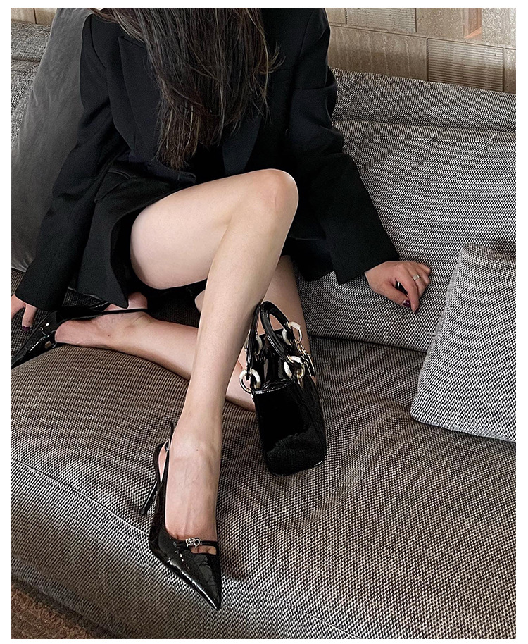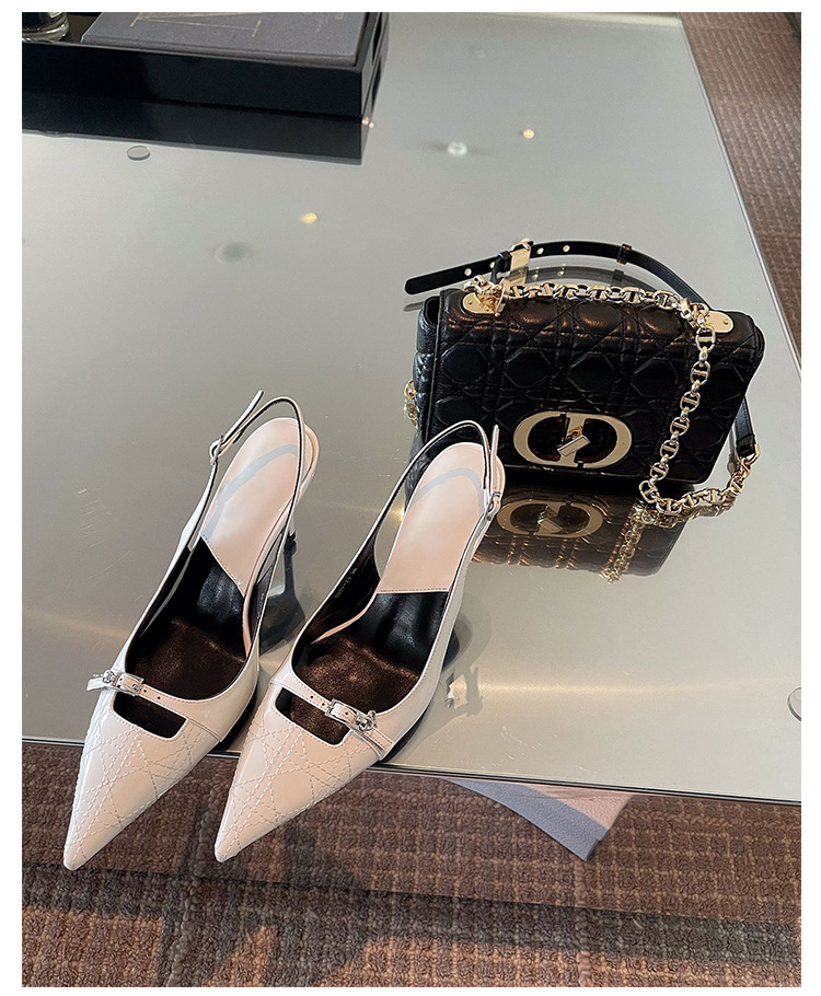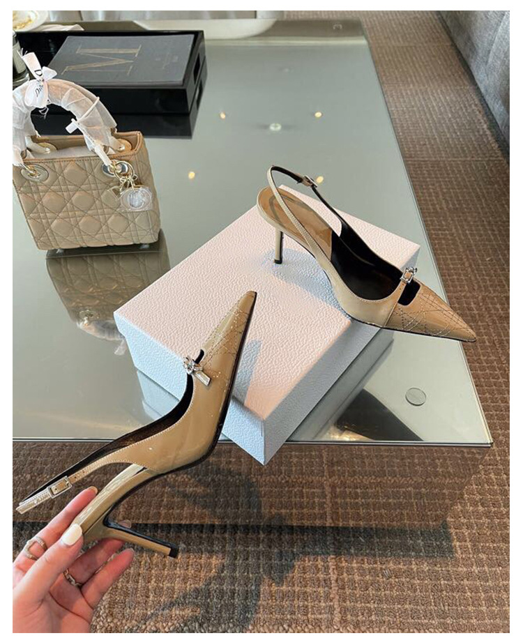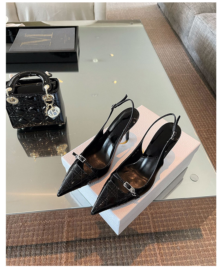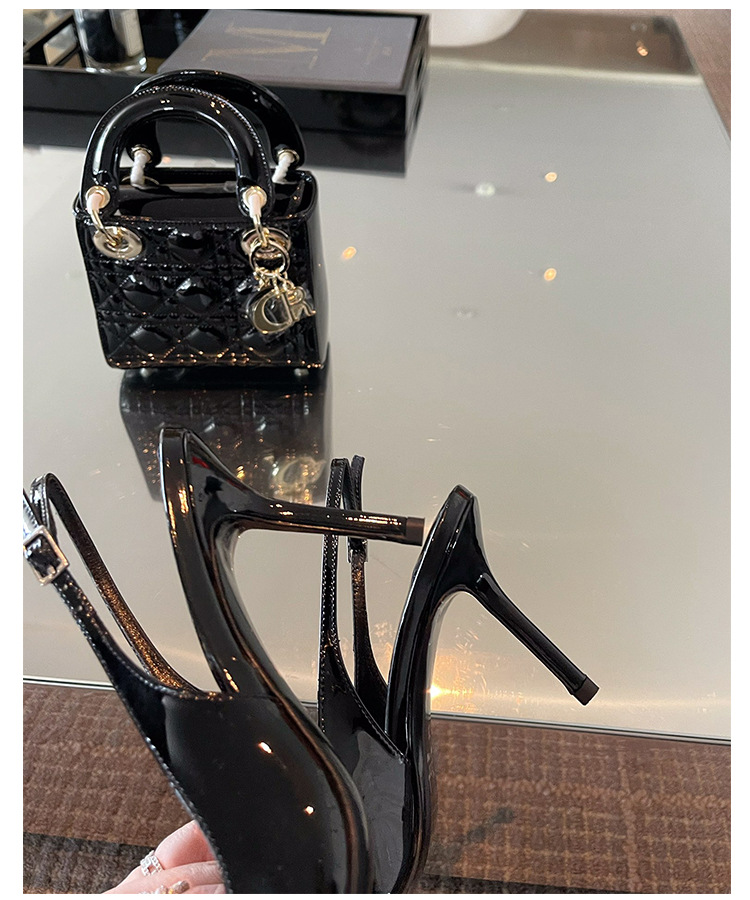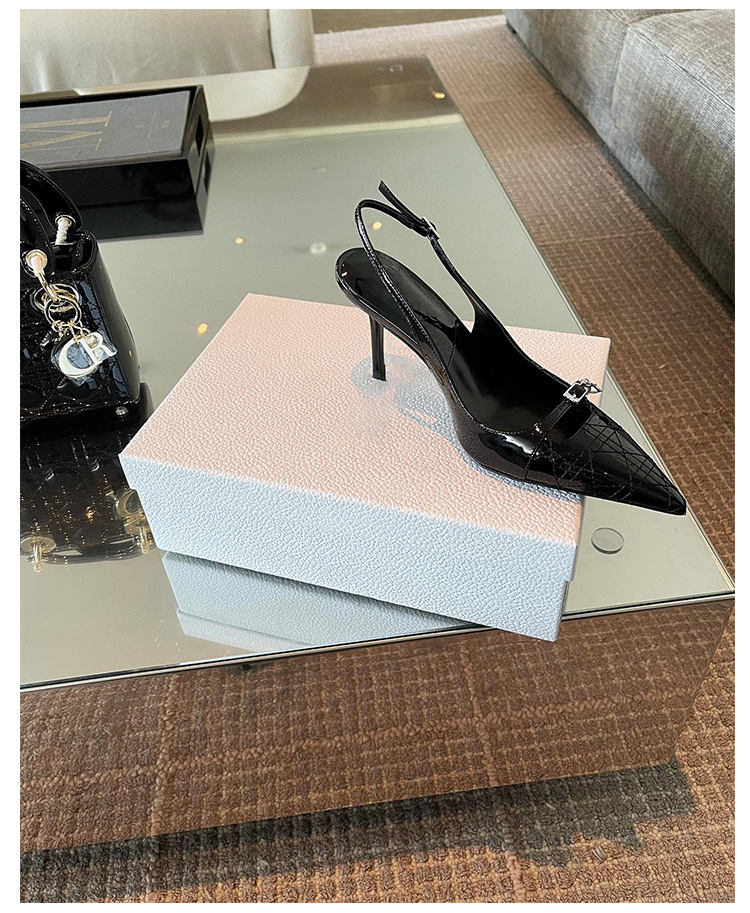 2025 여름 페이턴트 가죽 포인티드 토 화이트 토캡 샌들, 백 스트랩, 스틸레토 힐, 남성스러운 여성스러운 블랙 하이힐