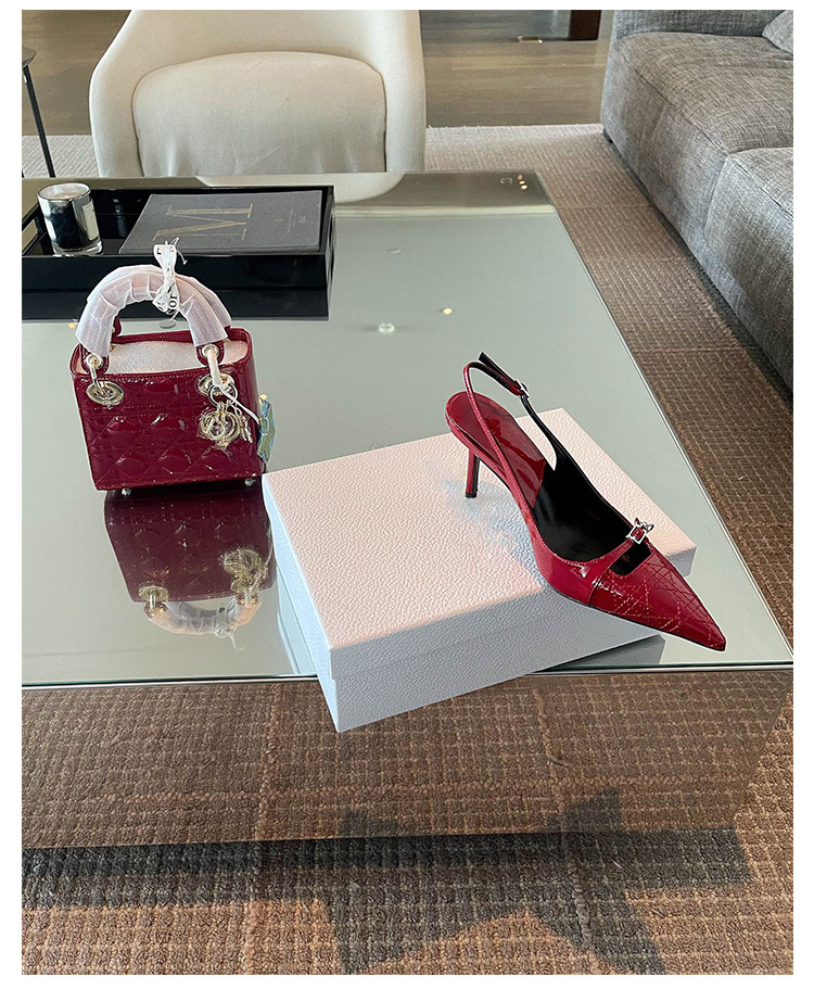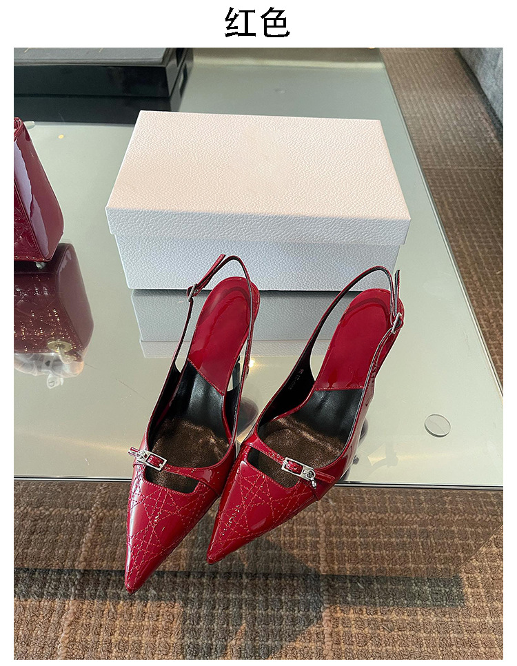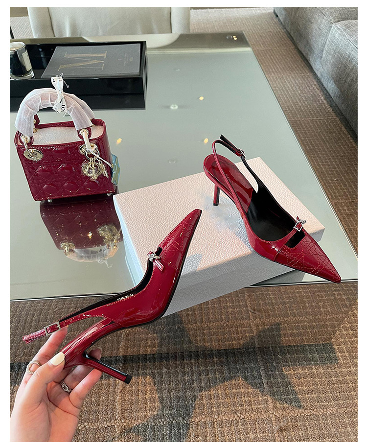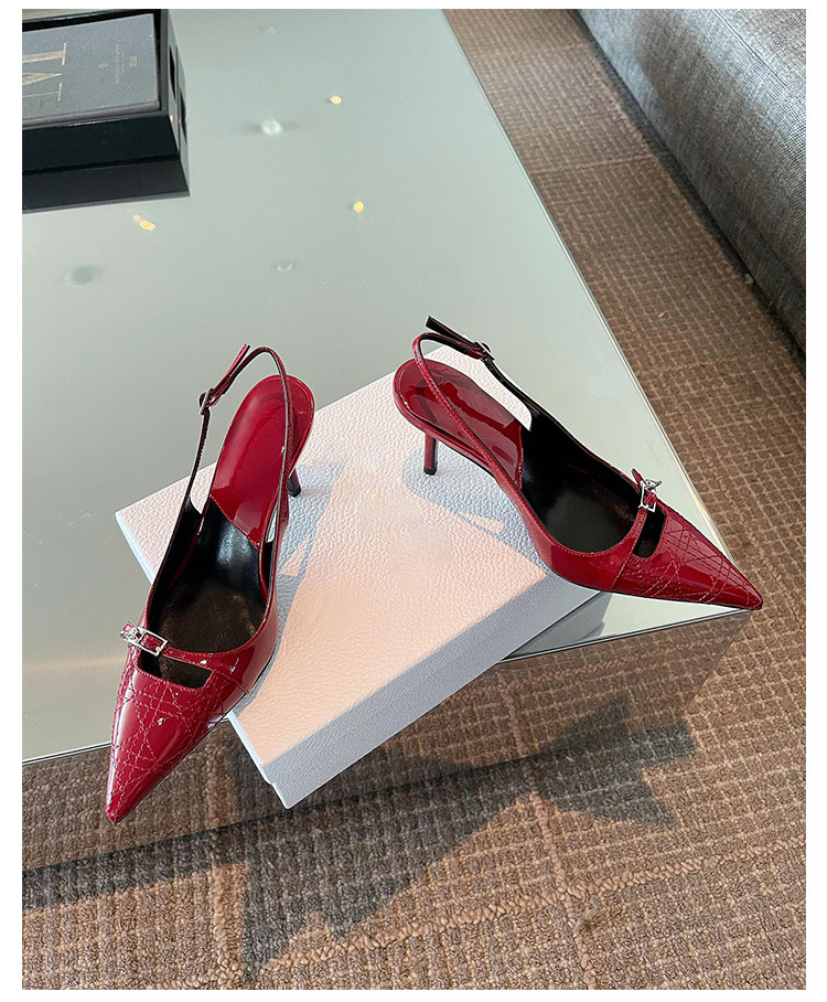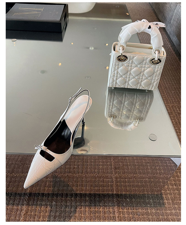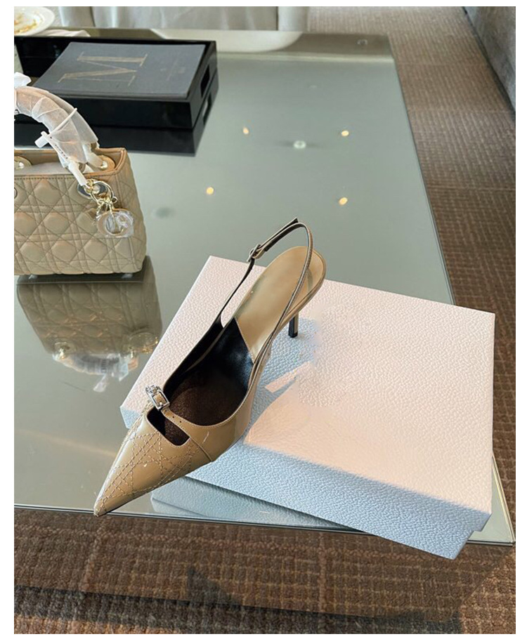 2025 여름 페이턴트 가죽 포인티드 토 화이트 토캡 샌들, 백 스트랩, 스틸레토 힐, 남성스러운 여성스러운 블랙 하이힐