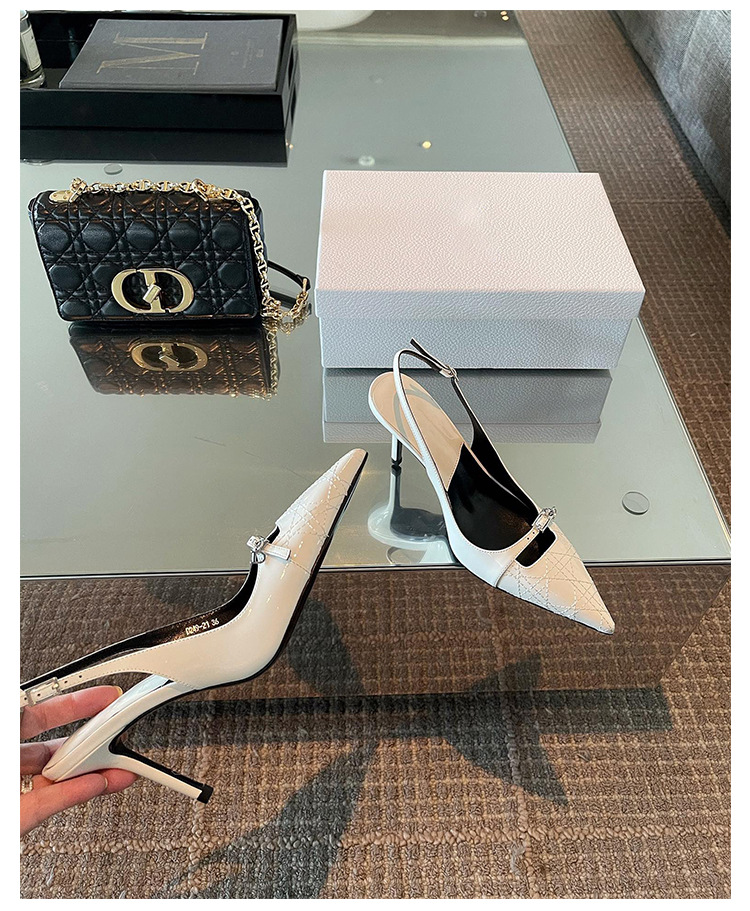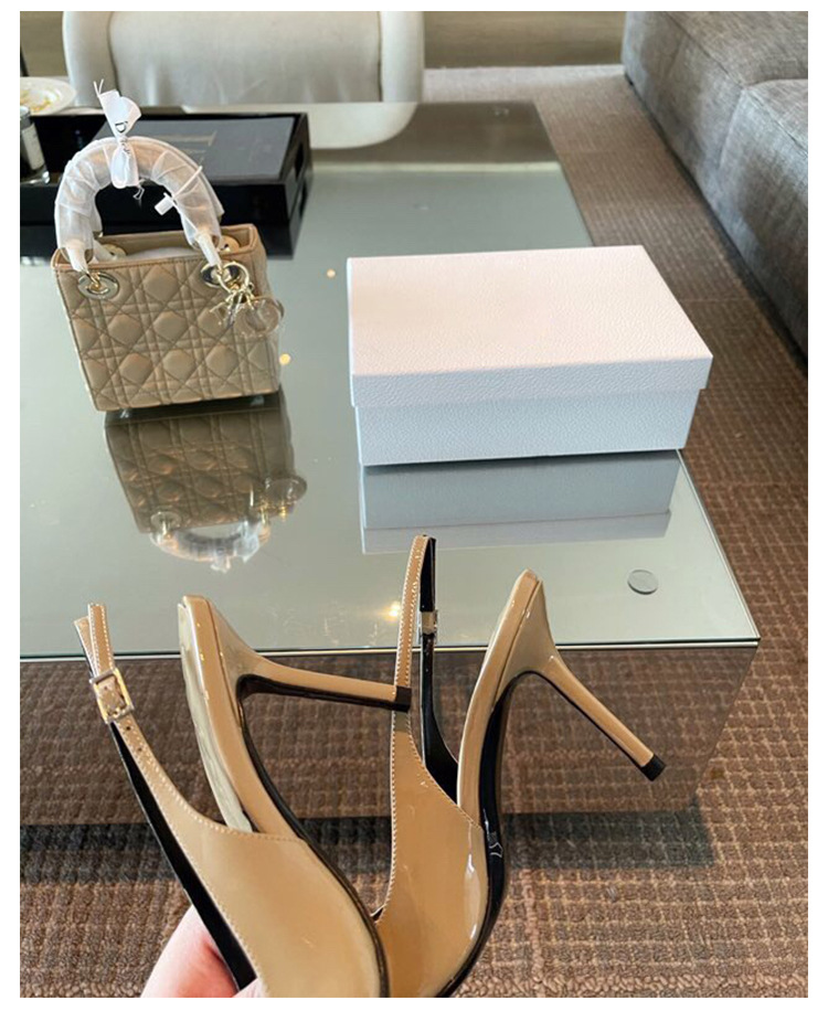 2025 여름 페이턴트 가죽 포인티드 토 화이트 토캡 샌들, 백 스트랩, 스틸레토 힐, 남성스러운 여성스러운 블랙 하이힐스토어 가기