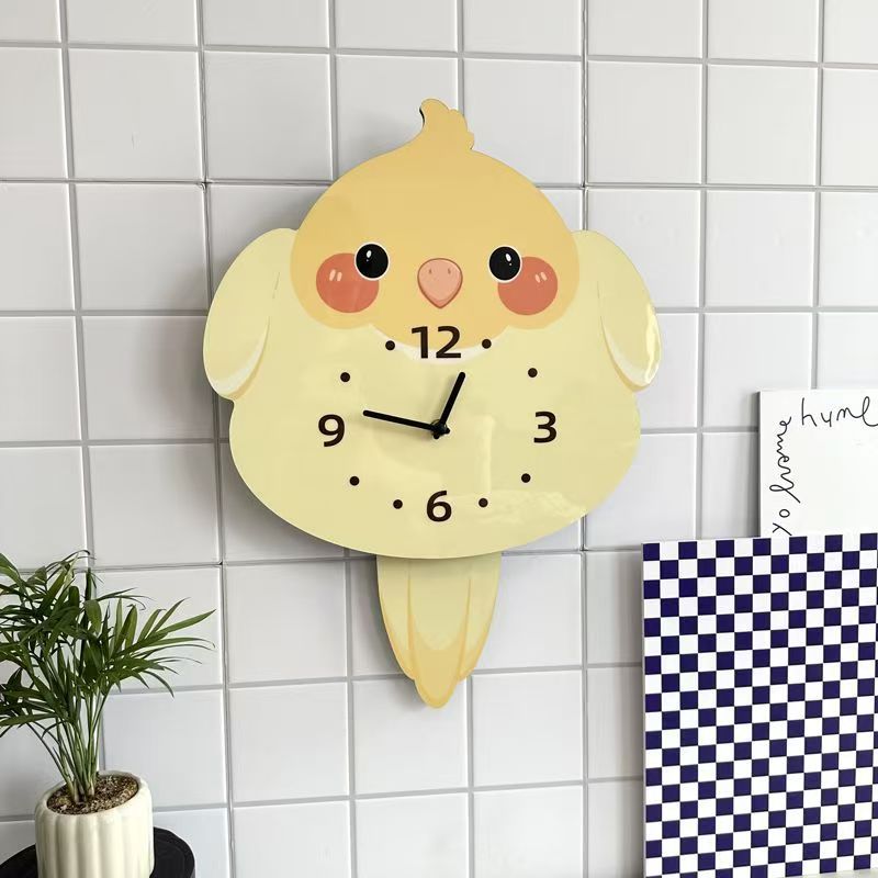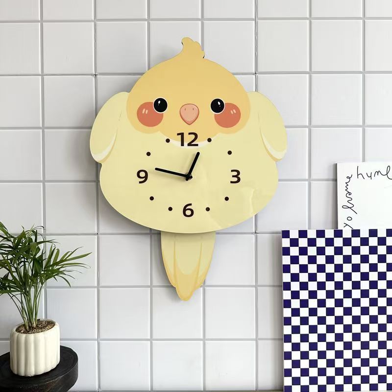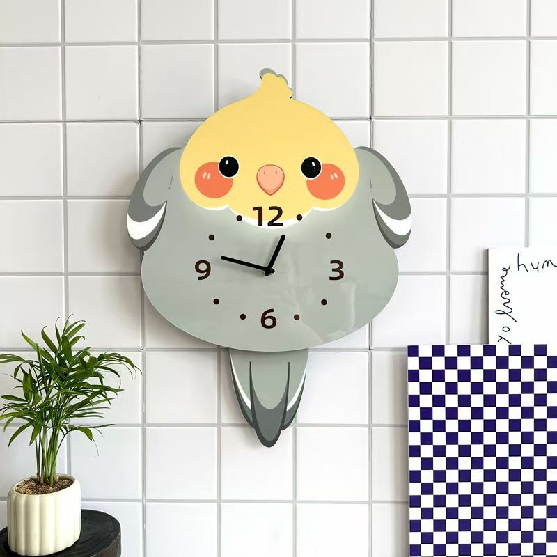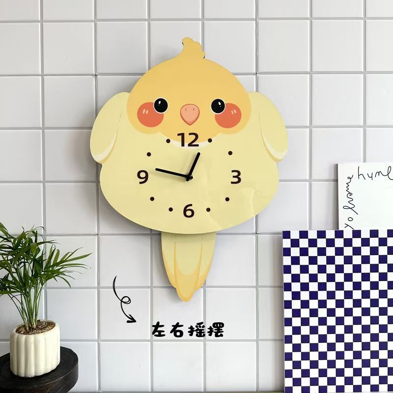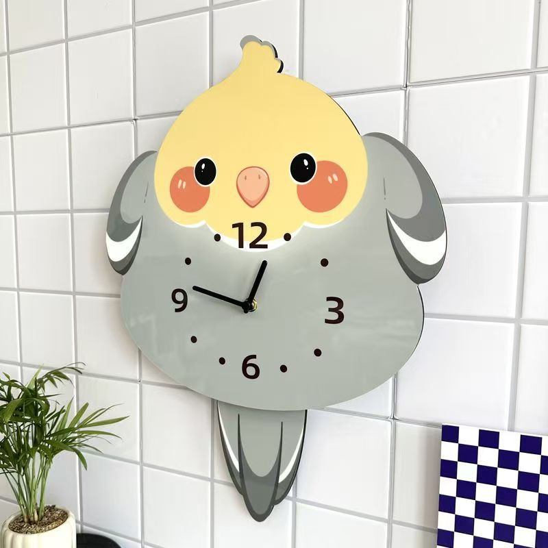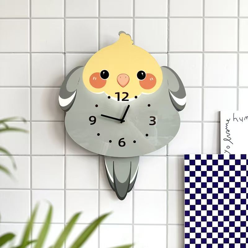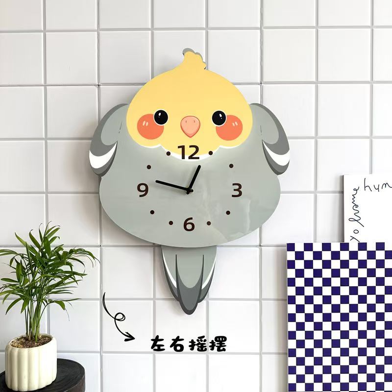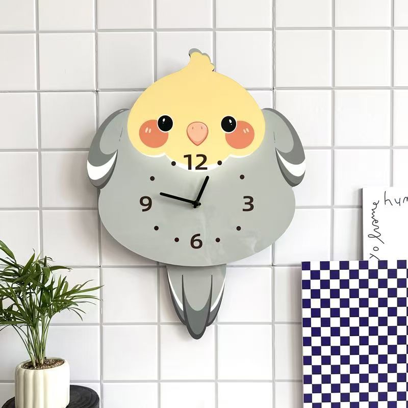 앵무새 새 귀여운 장식 벽시계 거실 애완 동물 침묵 스윙 시계 벽시계 장식품스토어 가기
