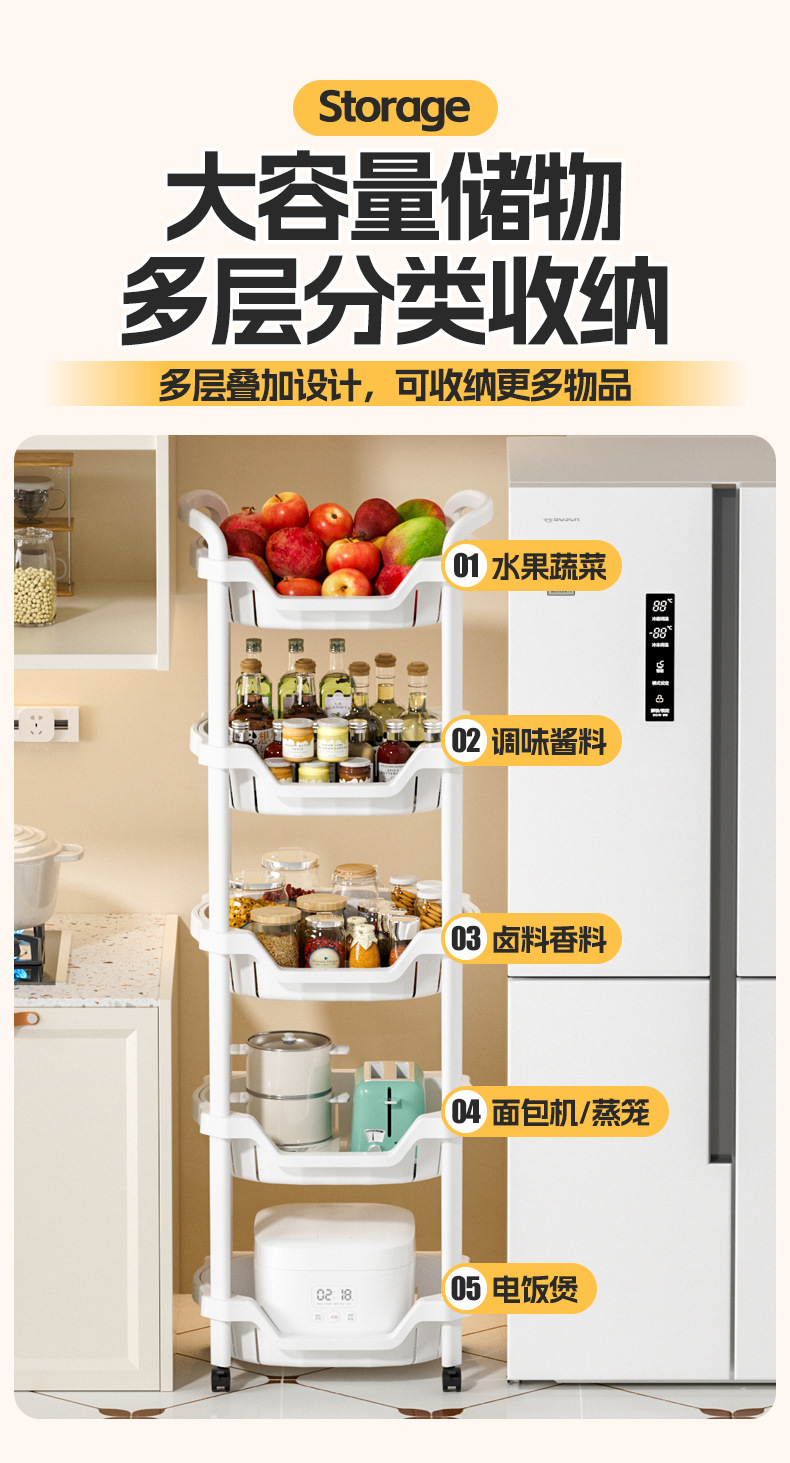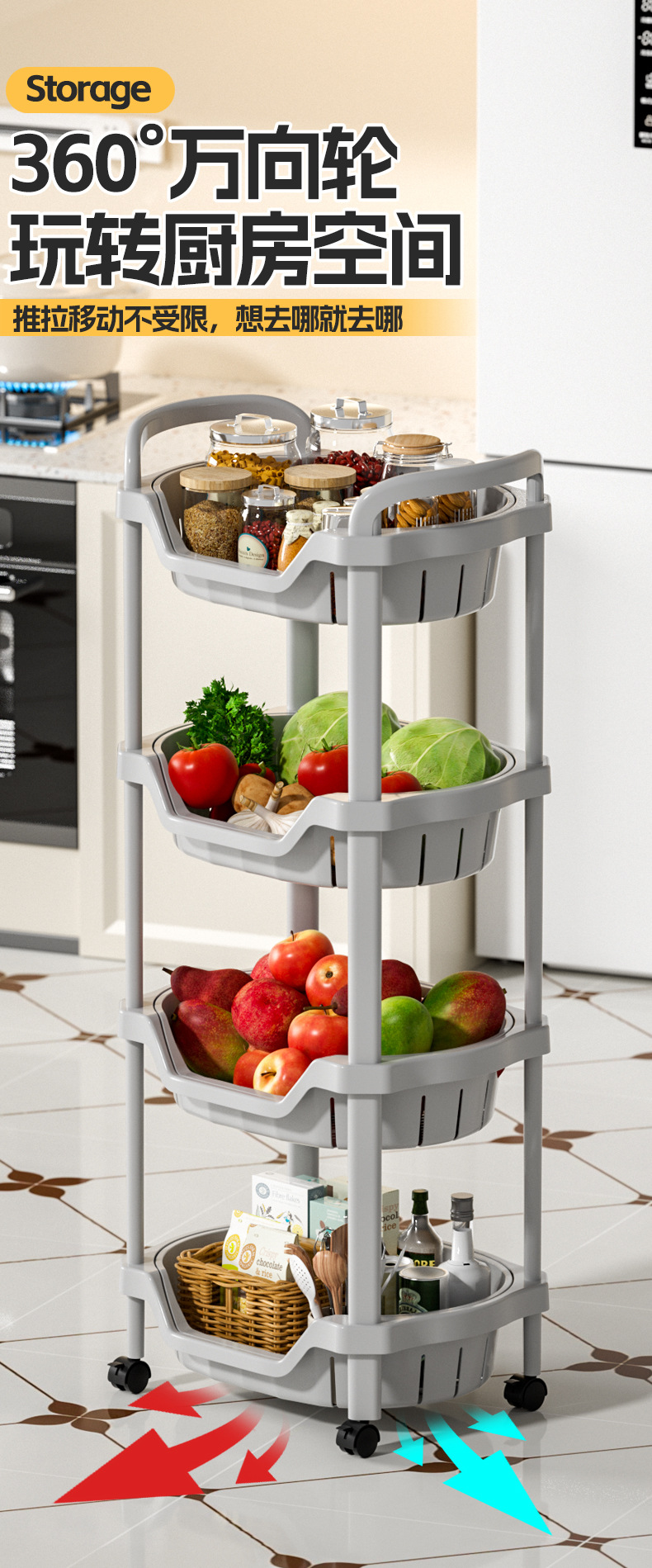 주방 랙 바닥에서 천장까지 다층 과일 및 야채 선반 용품 야채 바구니 보관 바구니 보관 홈 도매스토어 가기