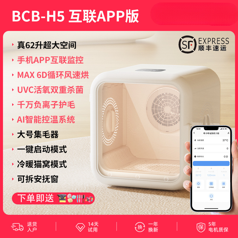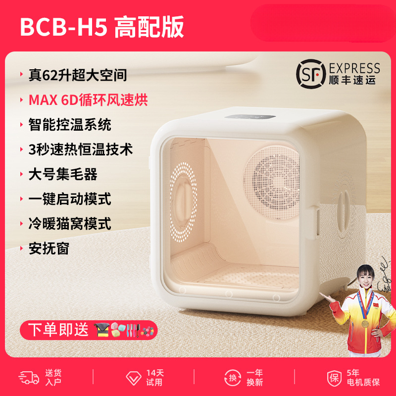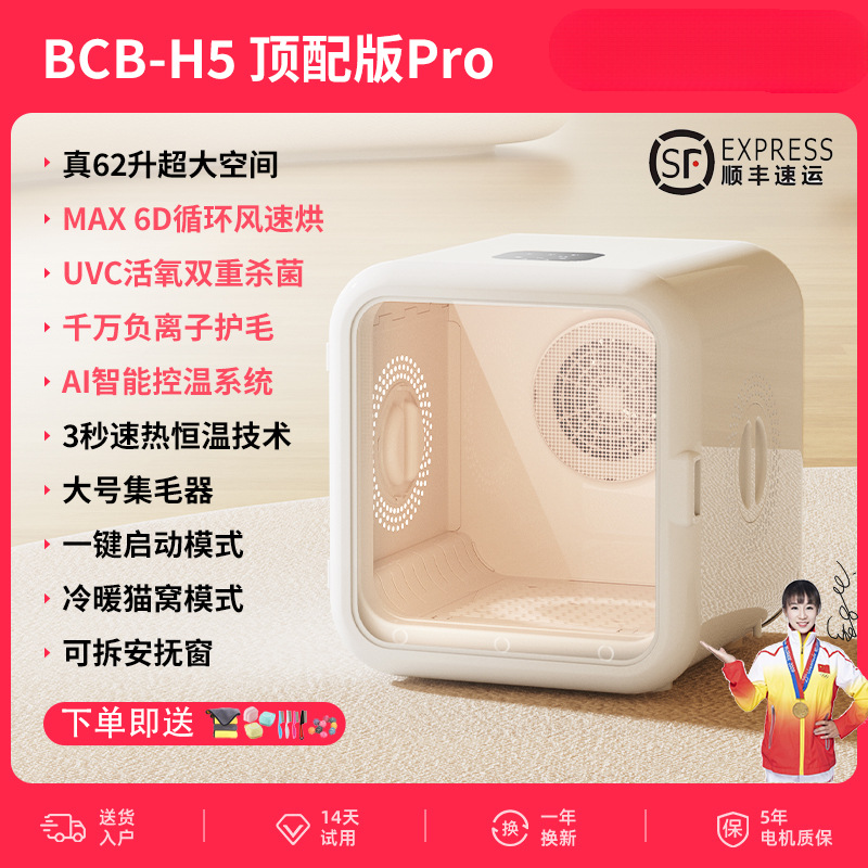 • H5Pro(단일 모터) 상위 버전 62L: 6D 3차원 순환 공기 + 오존-자외선 이중 소독 + 음이온 + 진정 창 + 모드 조정