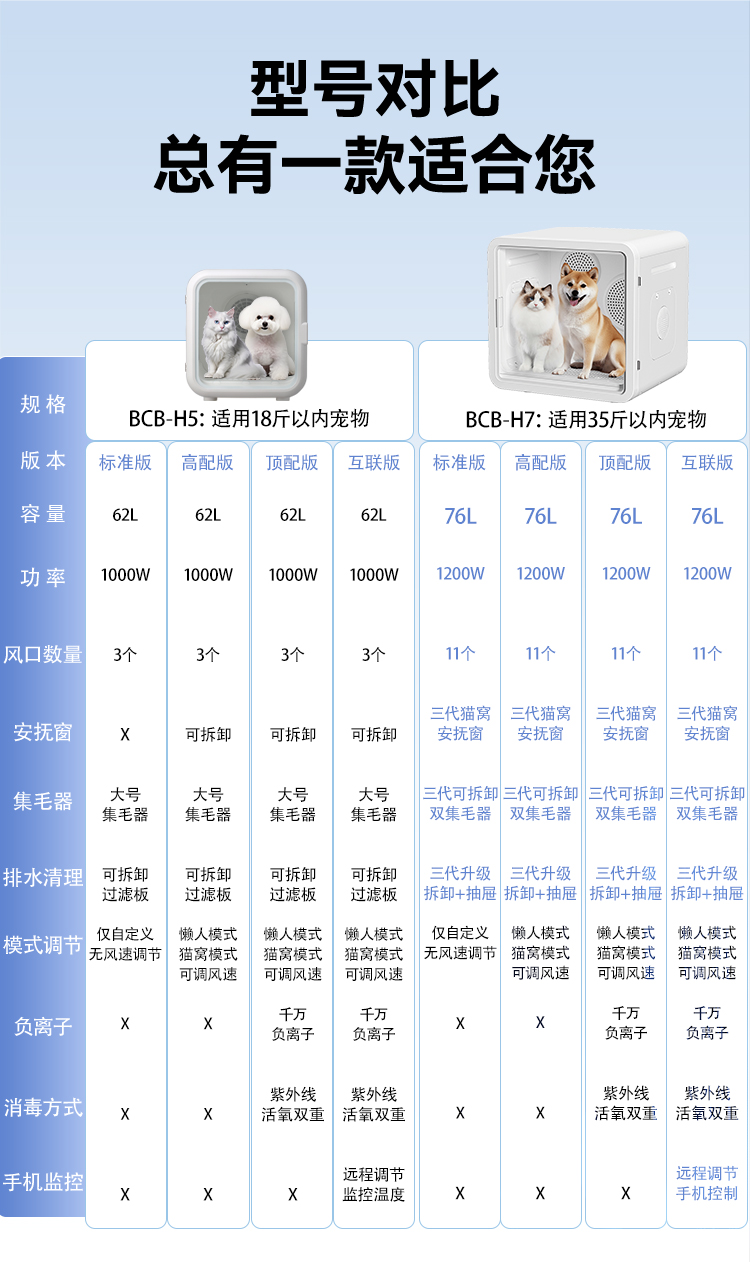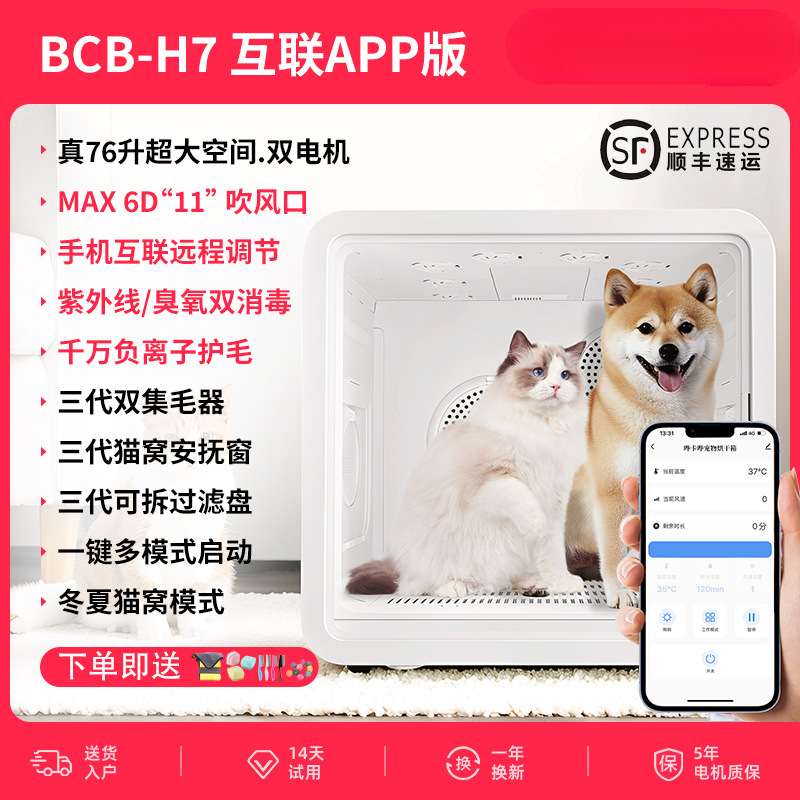 • H7Pro(듀얼 모터) 상위 버전 76L: 오존-자외선 이중 소독 + 음이온 + 진정 창 + 모드 조정 + 지능형 온도 제어