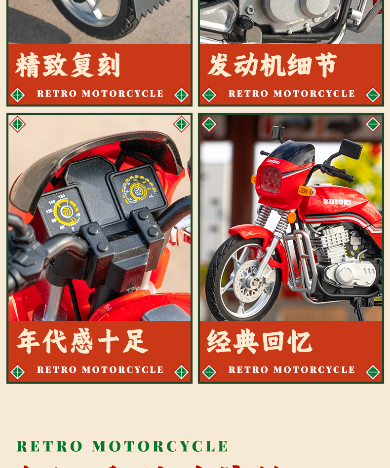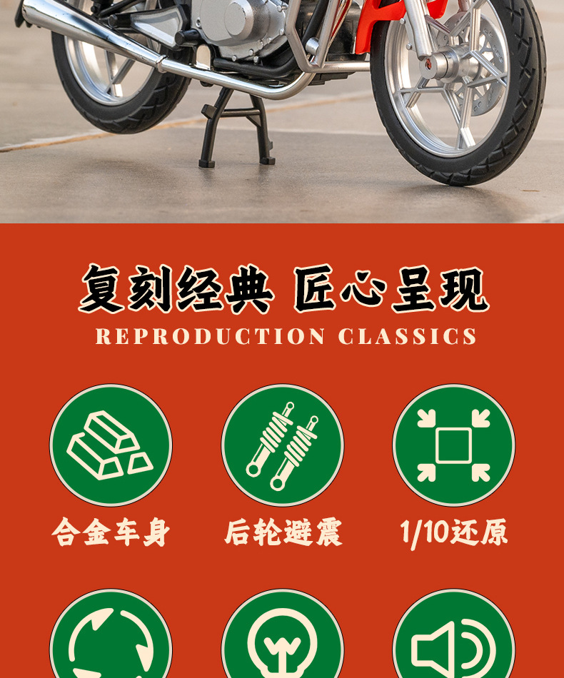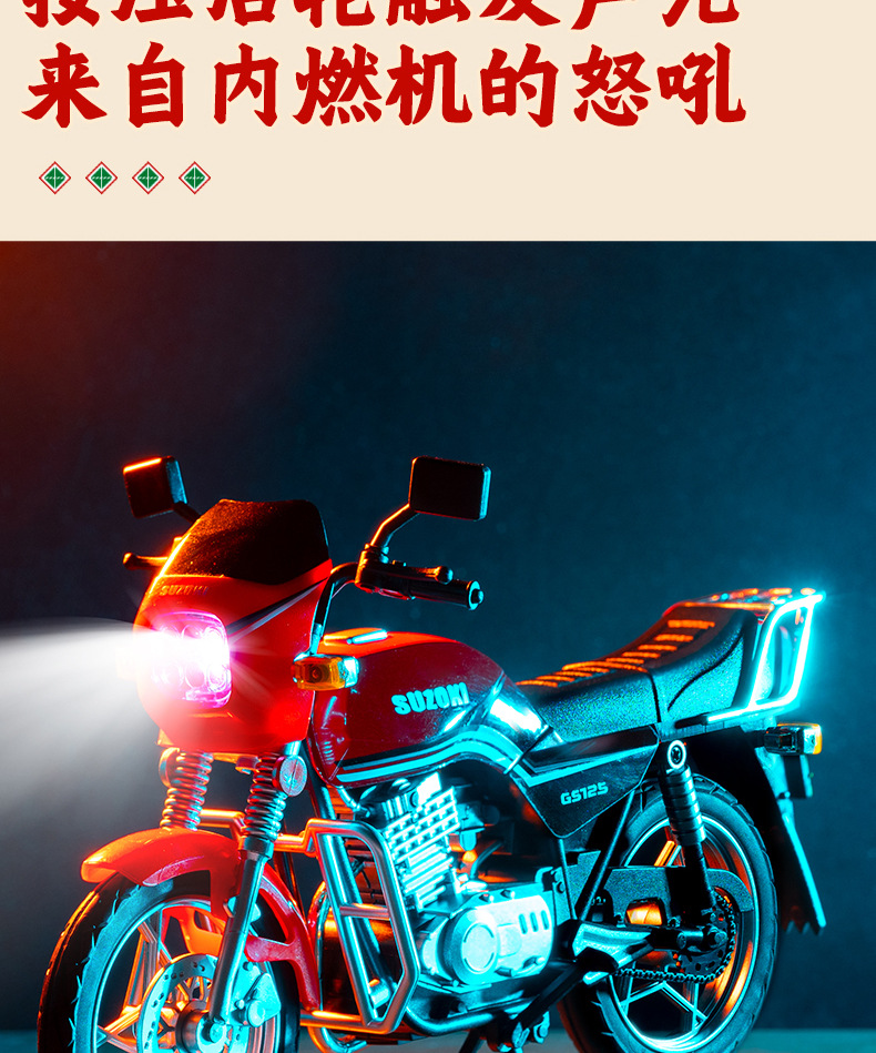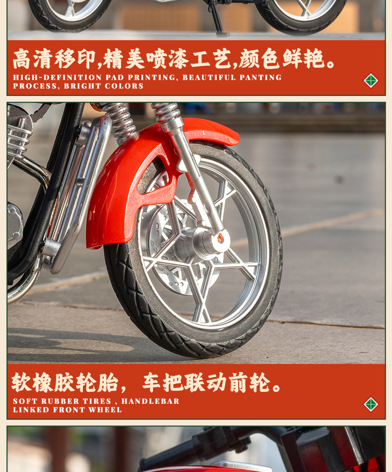 1:10 린무왕 합금 오토바이 모델 수집용 레트로 장식품 소리와 빛 충격 흡수 남자아이 장난감 선물 도매
