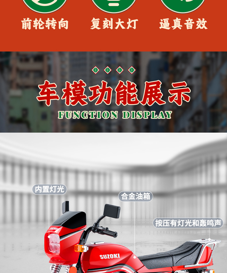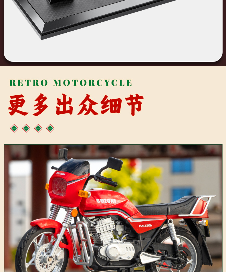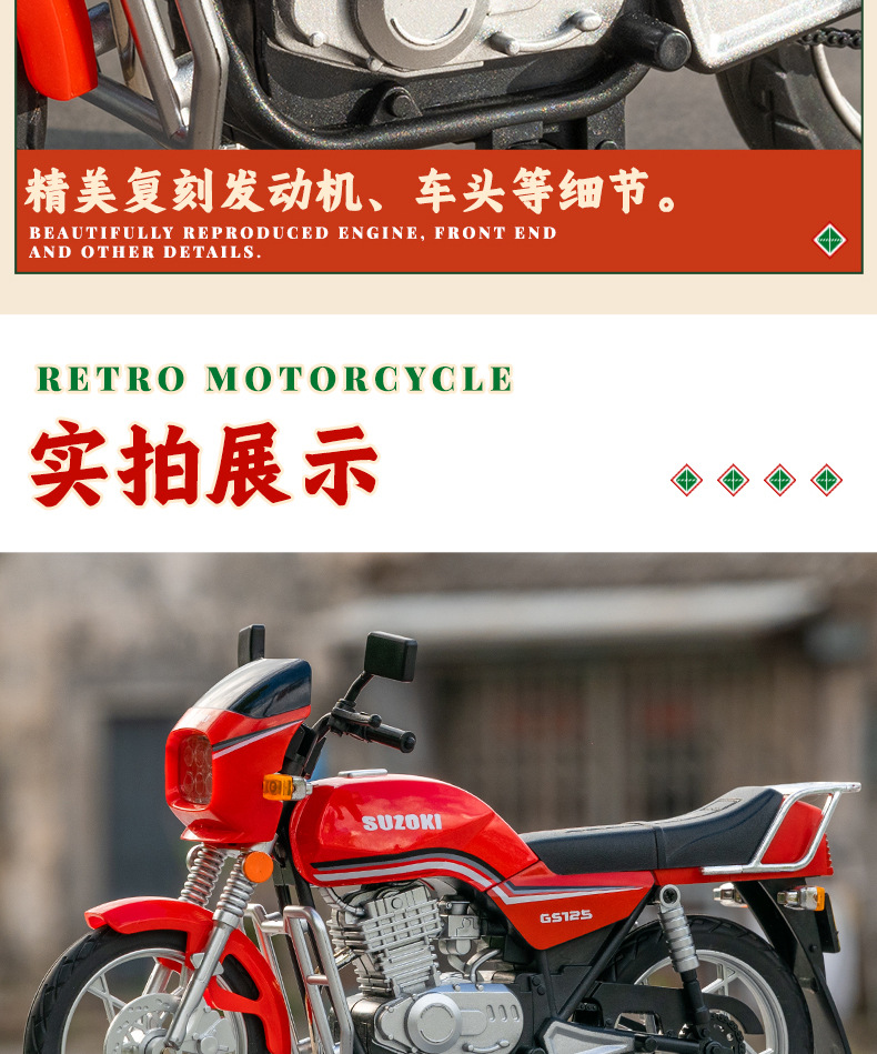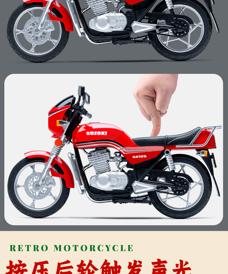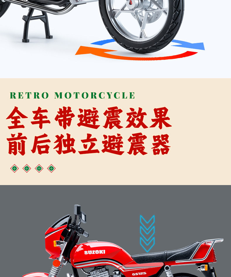1:10 린무왕 합금 오토바이 모델 수집용 레트로 장식품 소리와 빛 충격 흡수 남자아이 장난감 선물 도매