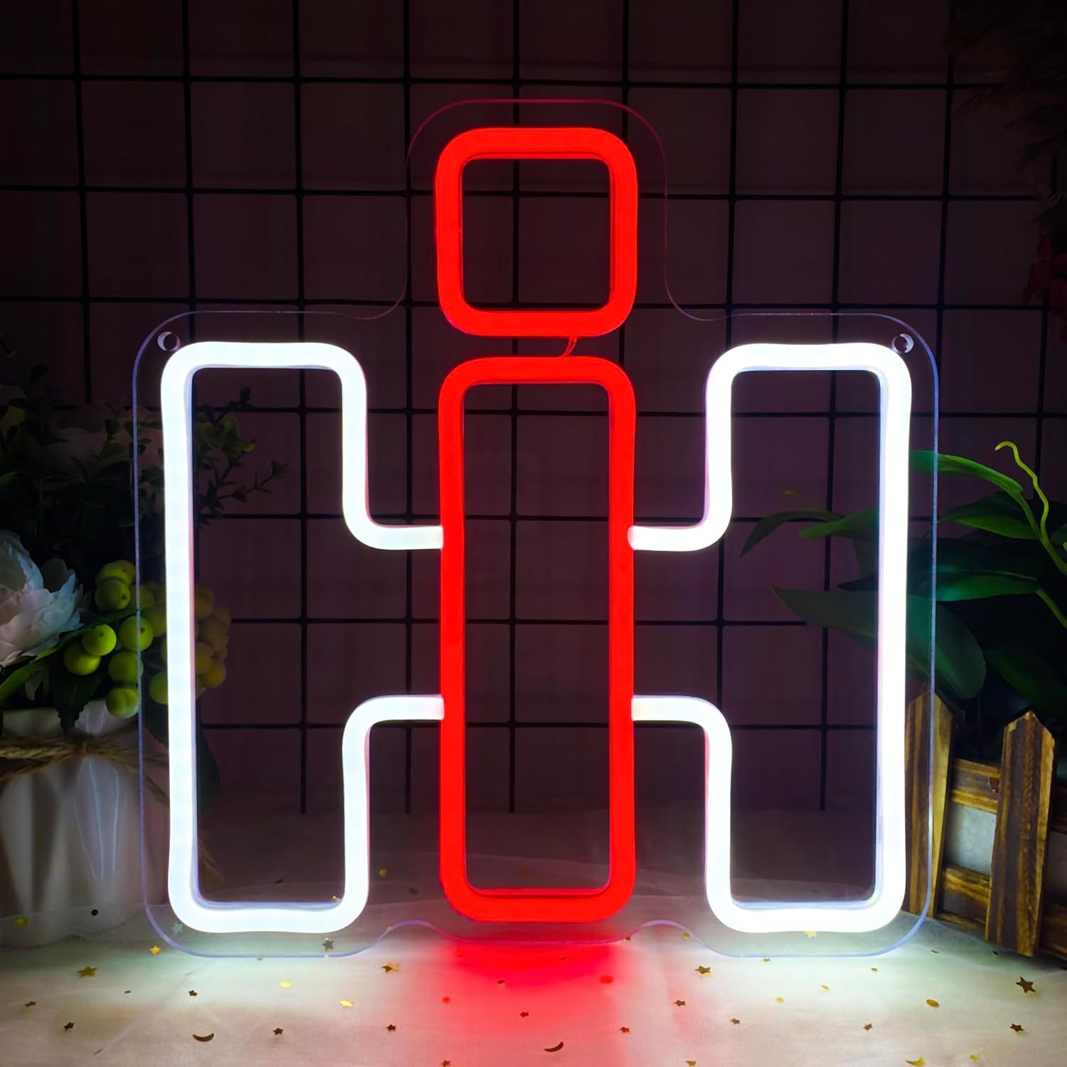 Deere 빛나는 로고 트랙터 모양 네온 불빛 굴삭기 브랜드 로고 빛나는 단어 차고 장식 조명