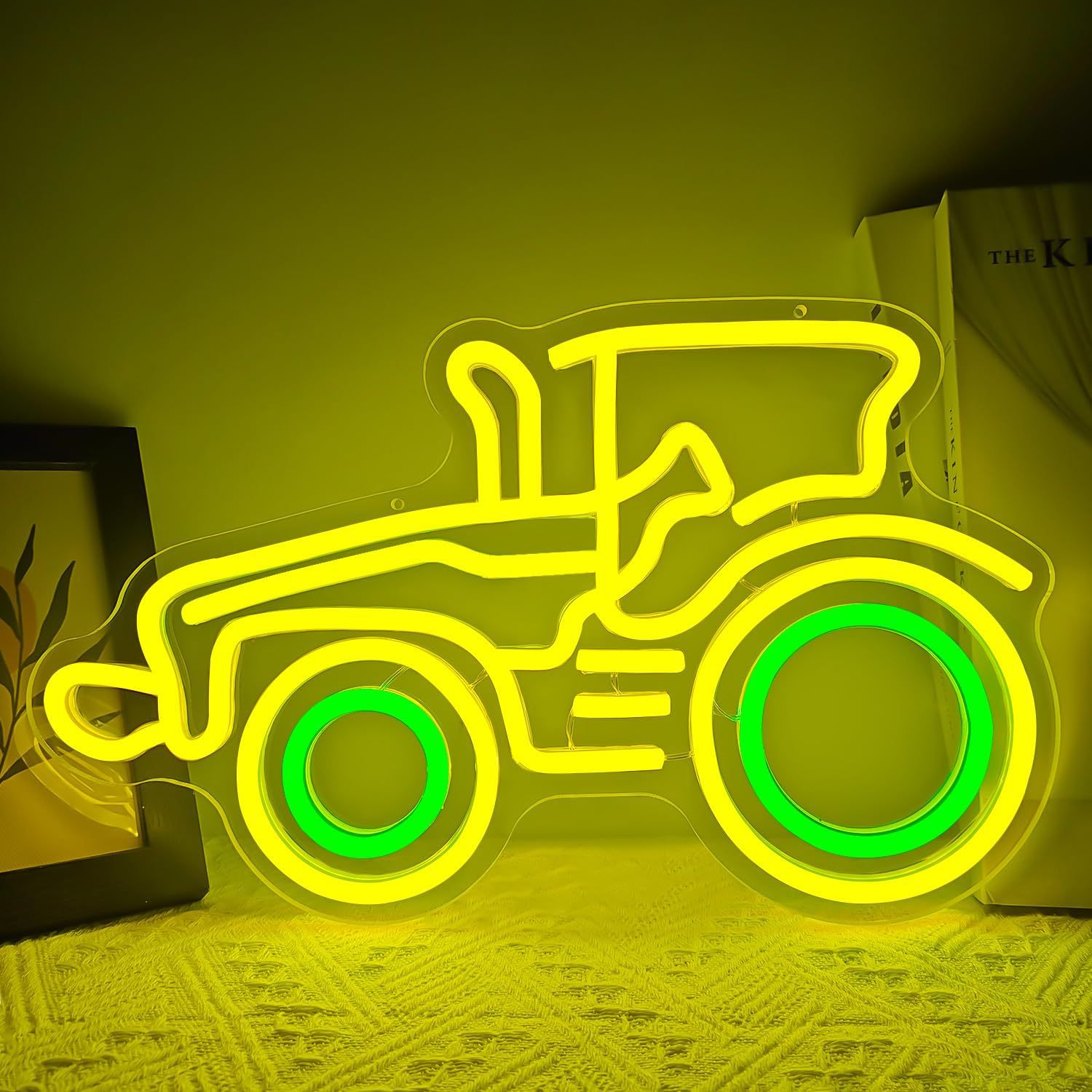 Deere 빛나는 로고 트랙터 모양 네온 불빛 굴삭기 브랜드 로고 빛나는 단어 차고 장식 조명스토어 가기