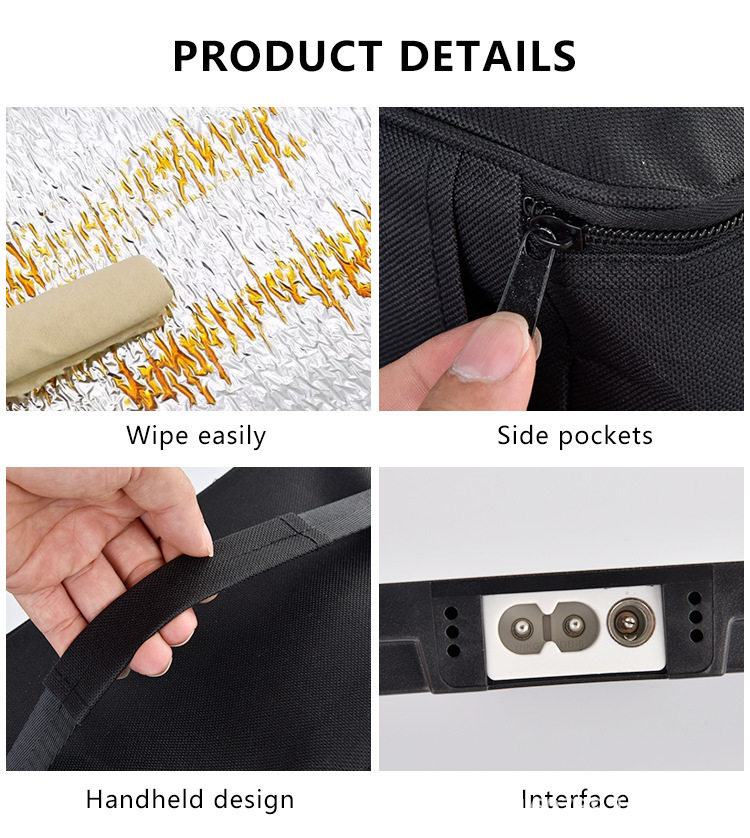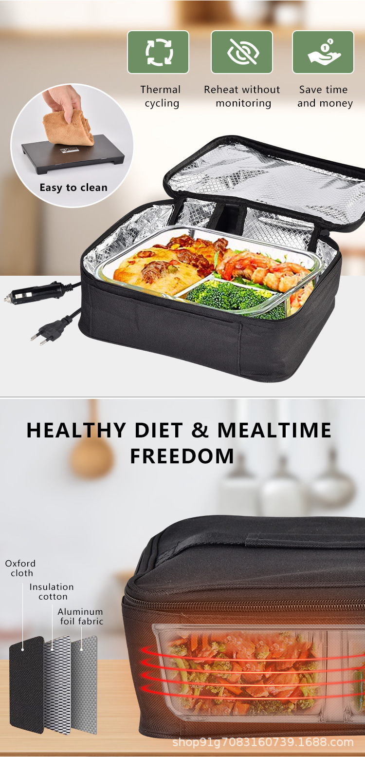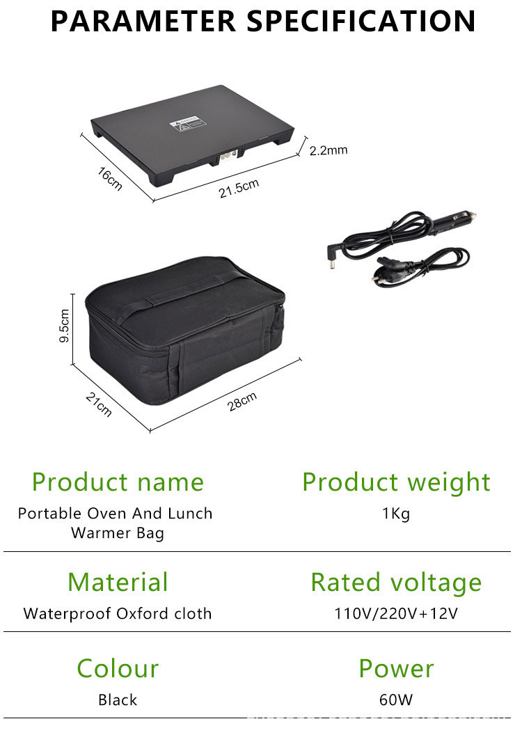 【材料】:保温袋:加密3*3的600d牛津布+2MM珍珠棉+耐高温PEVA 铝膜 加热板:ABS塑料外壳+铁氟龙高温图层