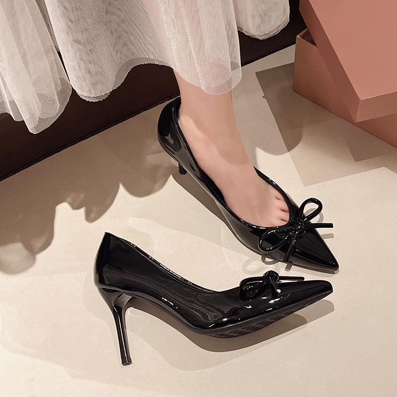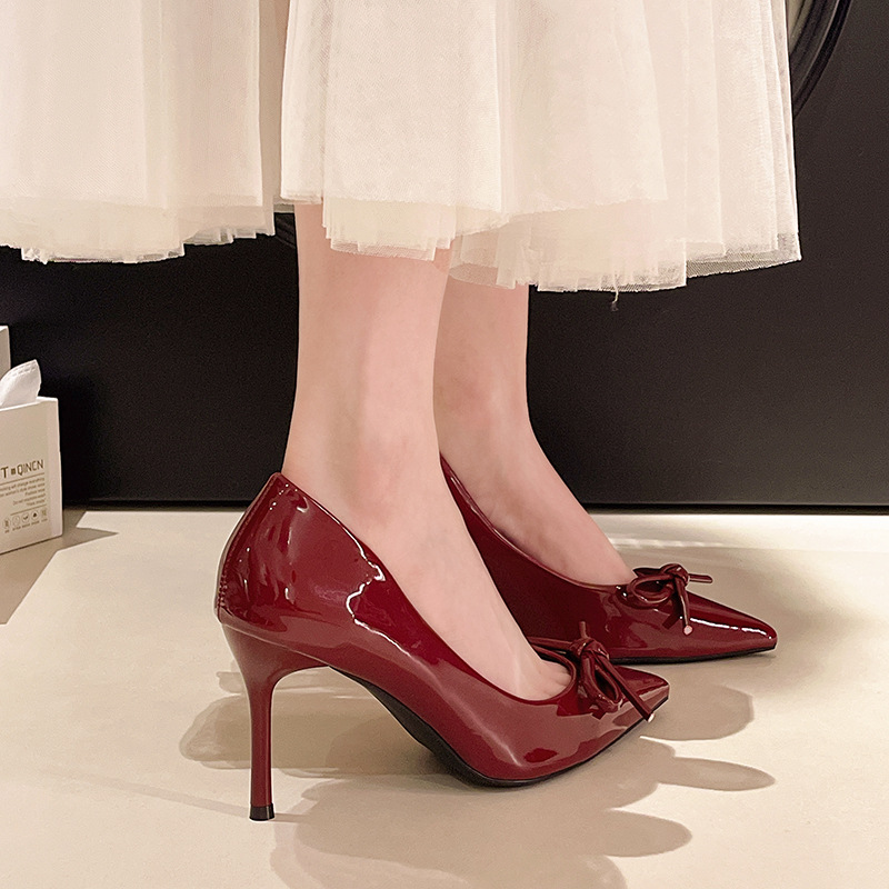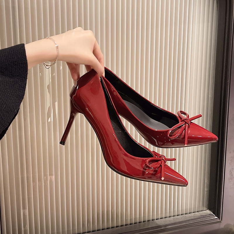 2025 새로운 가을 스타일 누드 보우 하이힐 여성 달콤한 요정 스타일 여성 뾰족한 발가락 기질 스틸레토 힐 틈새 신발