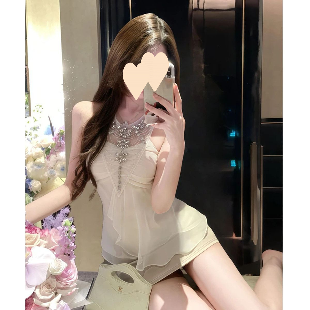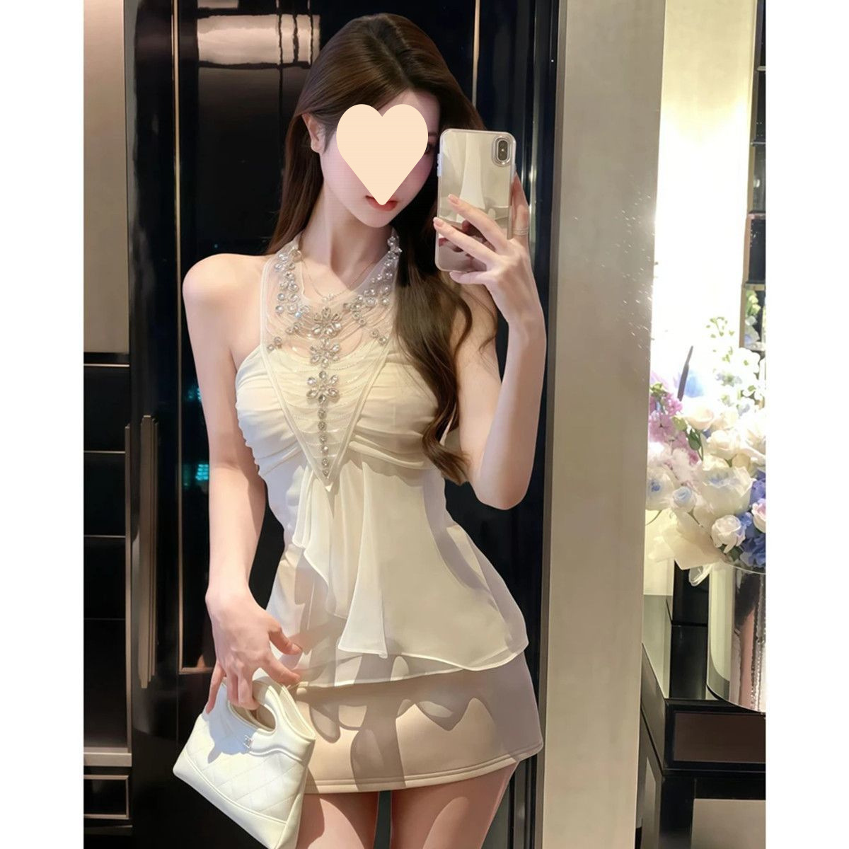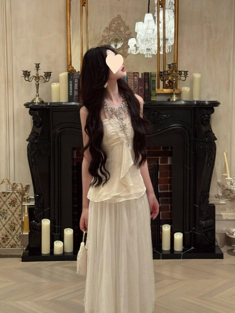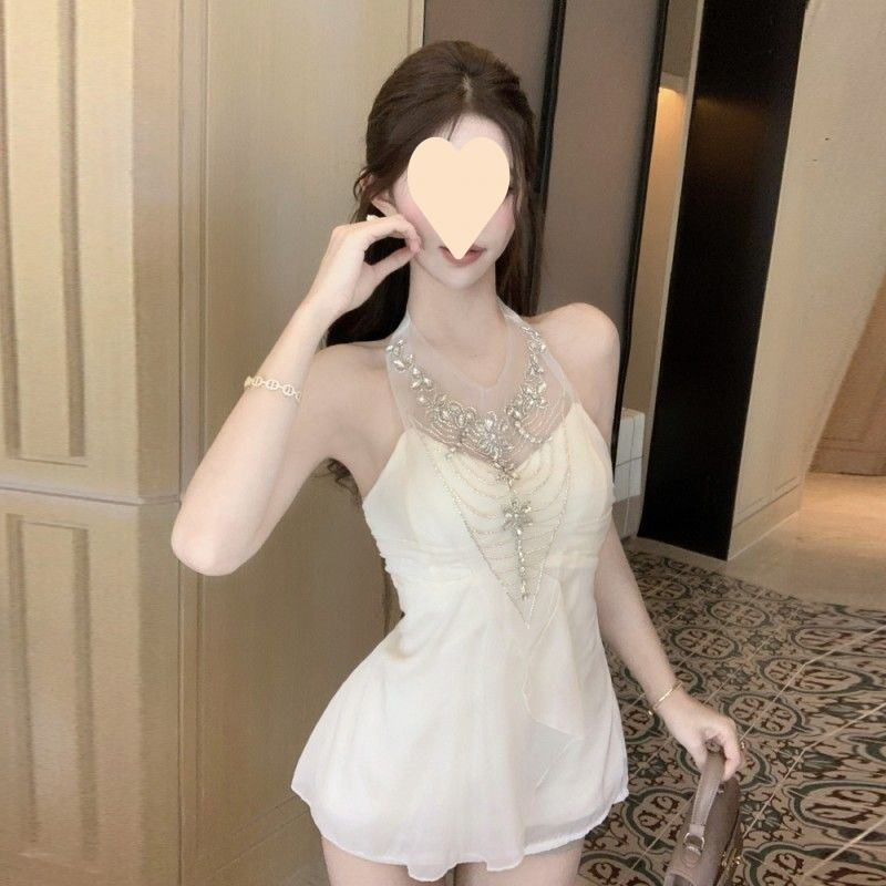 여름 아우터로 착용할 수 있는 다이아몬드가 박힌 홀터넥 튜브탑 민소매 조끼, 순수한 욕망, 섹시한 핫걸 기질, 여성용 쉬폰 셔츠 탑스토어 가기