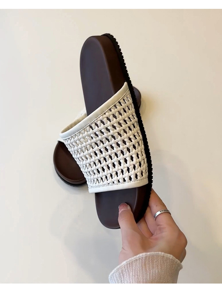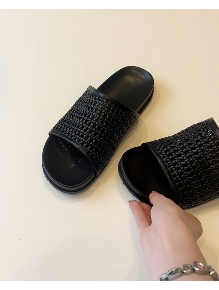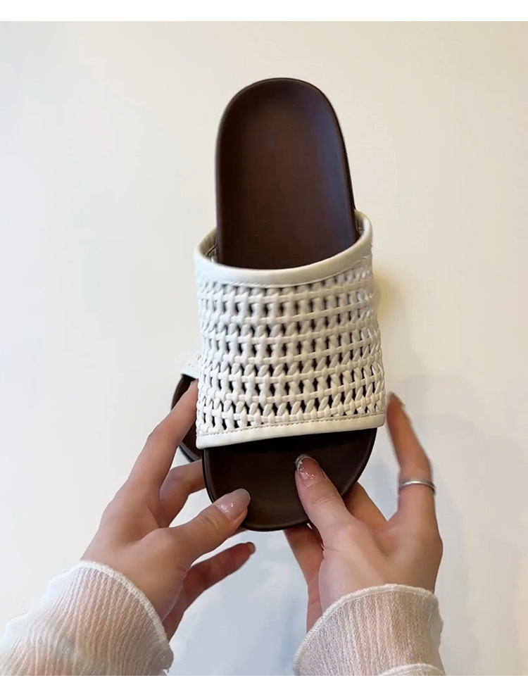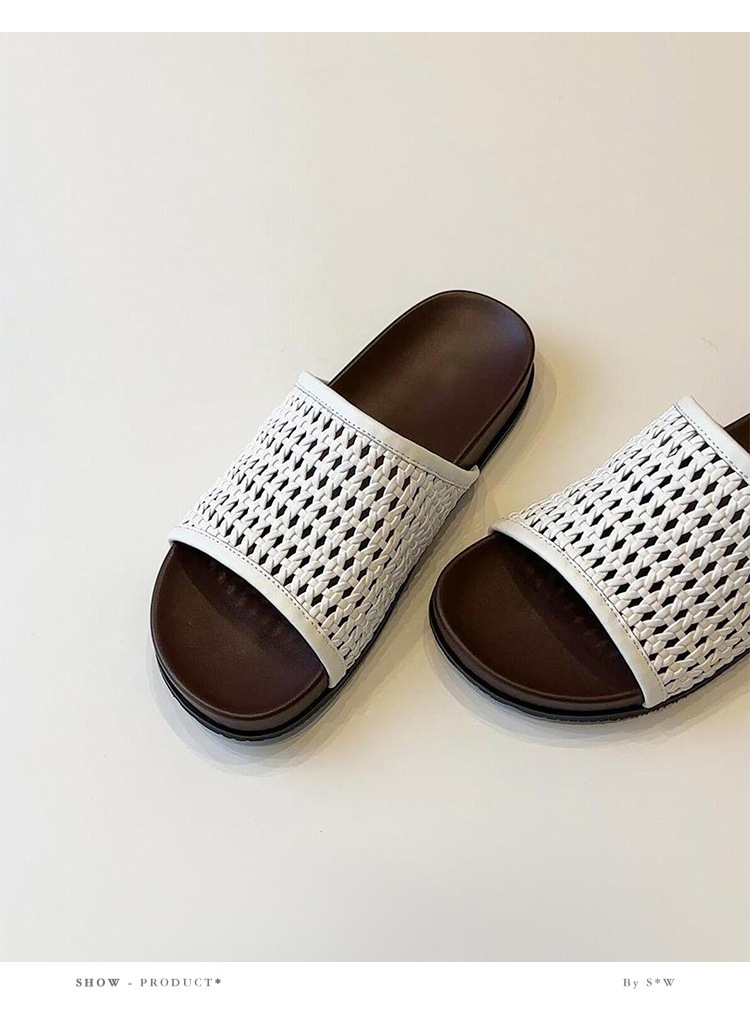 여성용 땋은 망사 신발, 프렌치 레트로 통기성 아우터, 두꺼운 밑창 비치 슈즈, 플랫 슬리퍼, 여름스토어 가기