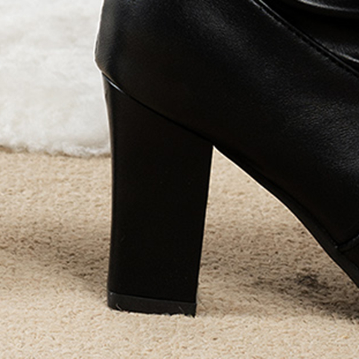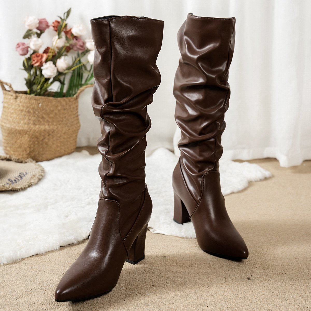 여성을위한 하이 부츠 2025 가을, 겨울 새로운 도매 대형 블랙 패션 뾰족한 외국 무역 여성 부츠 두꺼운 굽 부츠