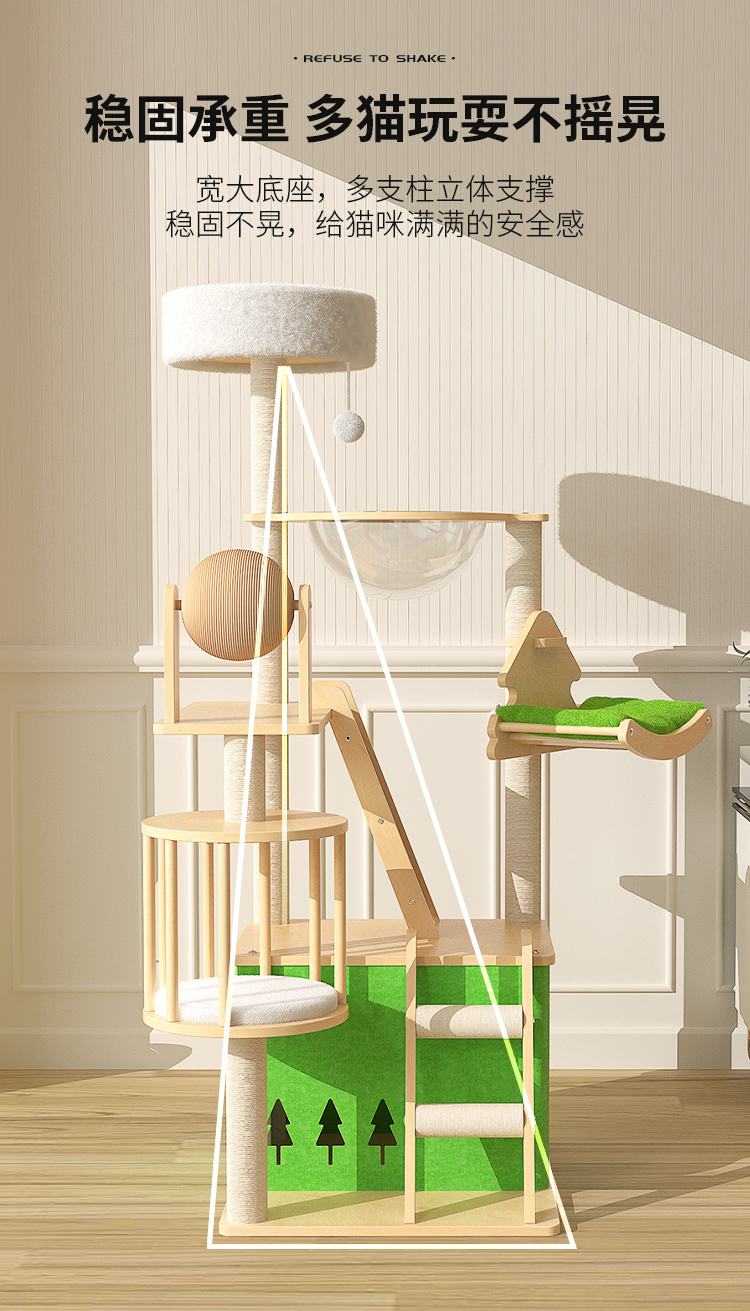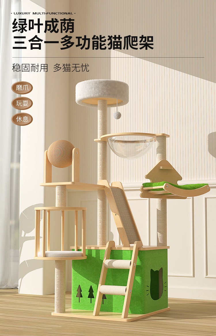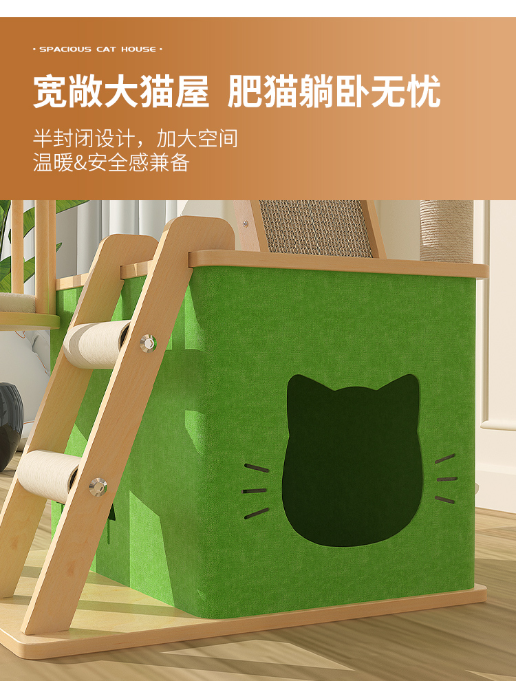 • ♭ζζ♭ζζ绿叶成荫-简约款【6层太空舱+大猫屋+猫抓球+猫窝+跳台吊球】♭ζζ♭ζζ