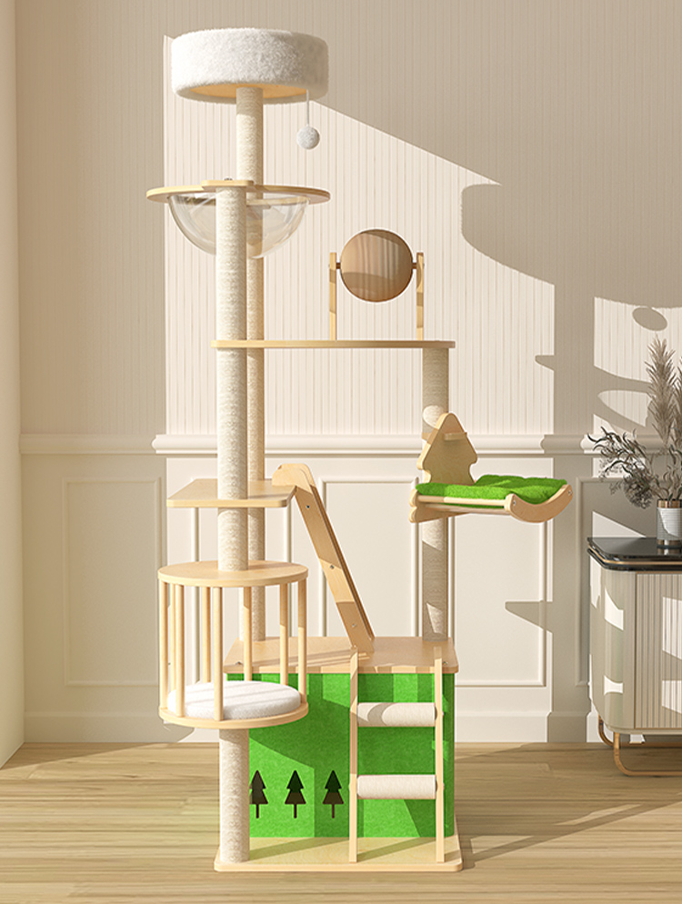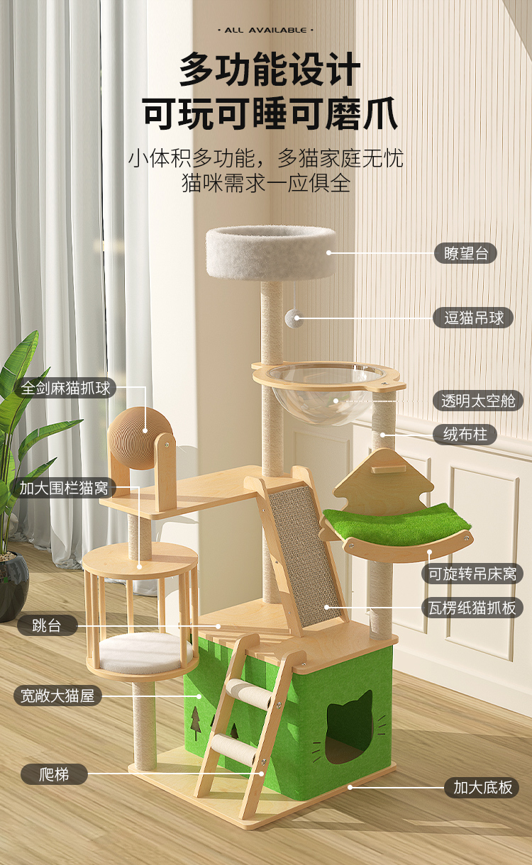 • ♭ζζ♭ζζ绿叶成荫-基础款【8层太空舱+大猫屋+猫抓板+猫抓球+猫窝+跳台吊球】♭ζζ♭ζζ