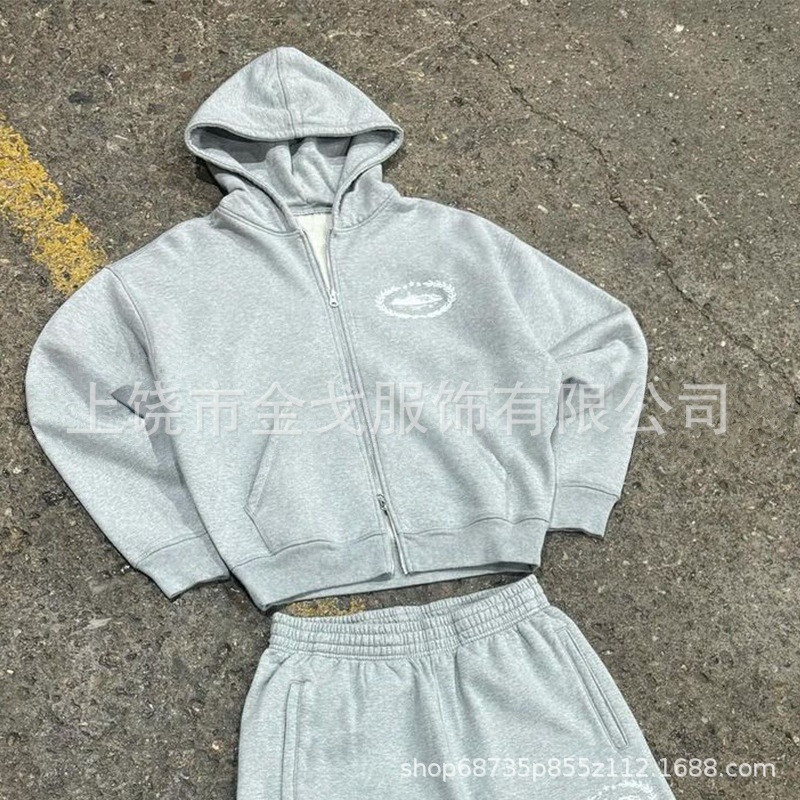 가을 겨울 트렌디한 코르테이즈 데빌 아일랜드 프린트 남녀 스포츠 캐주얼 후드티 세트 도매스토어 가기